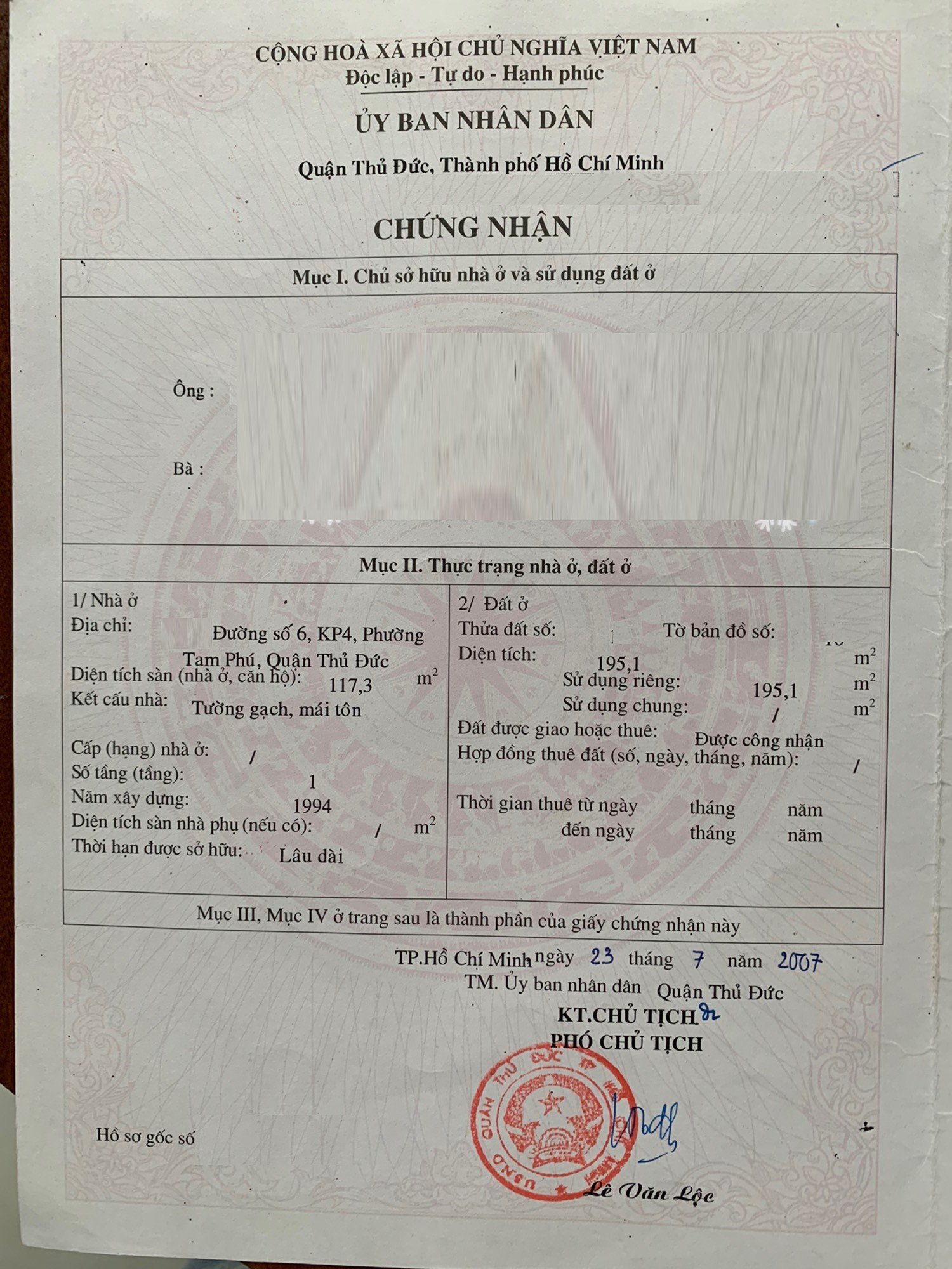 Địa chỉ tài sản: Đường Số 6, Phường Tam Phú, Phường Tam Phú, Quận Thủ Đức, Hồ Chí Minh