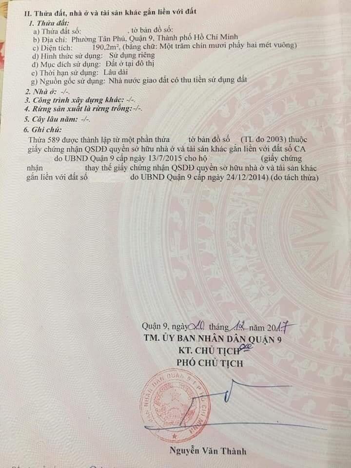 Địa chỉ tài sản: đường 138, Phường Tân Phú, Phường Tân Phú, Quận 9, Hồ Chí Minh