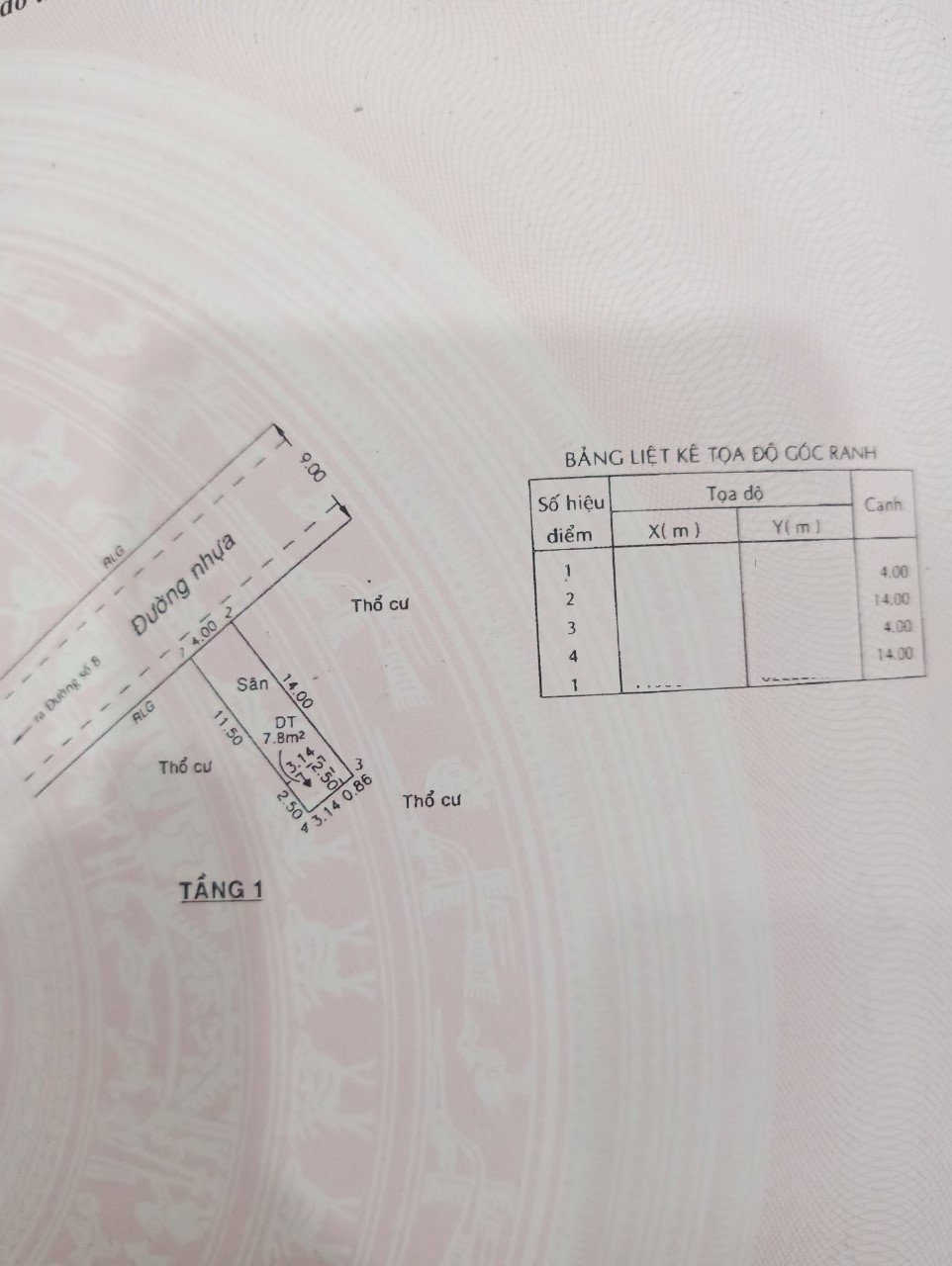 *Diện Tích đất công nhận: 56 m2 ngang 4 m x dài 14 m