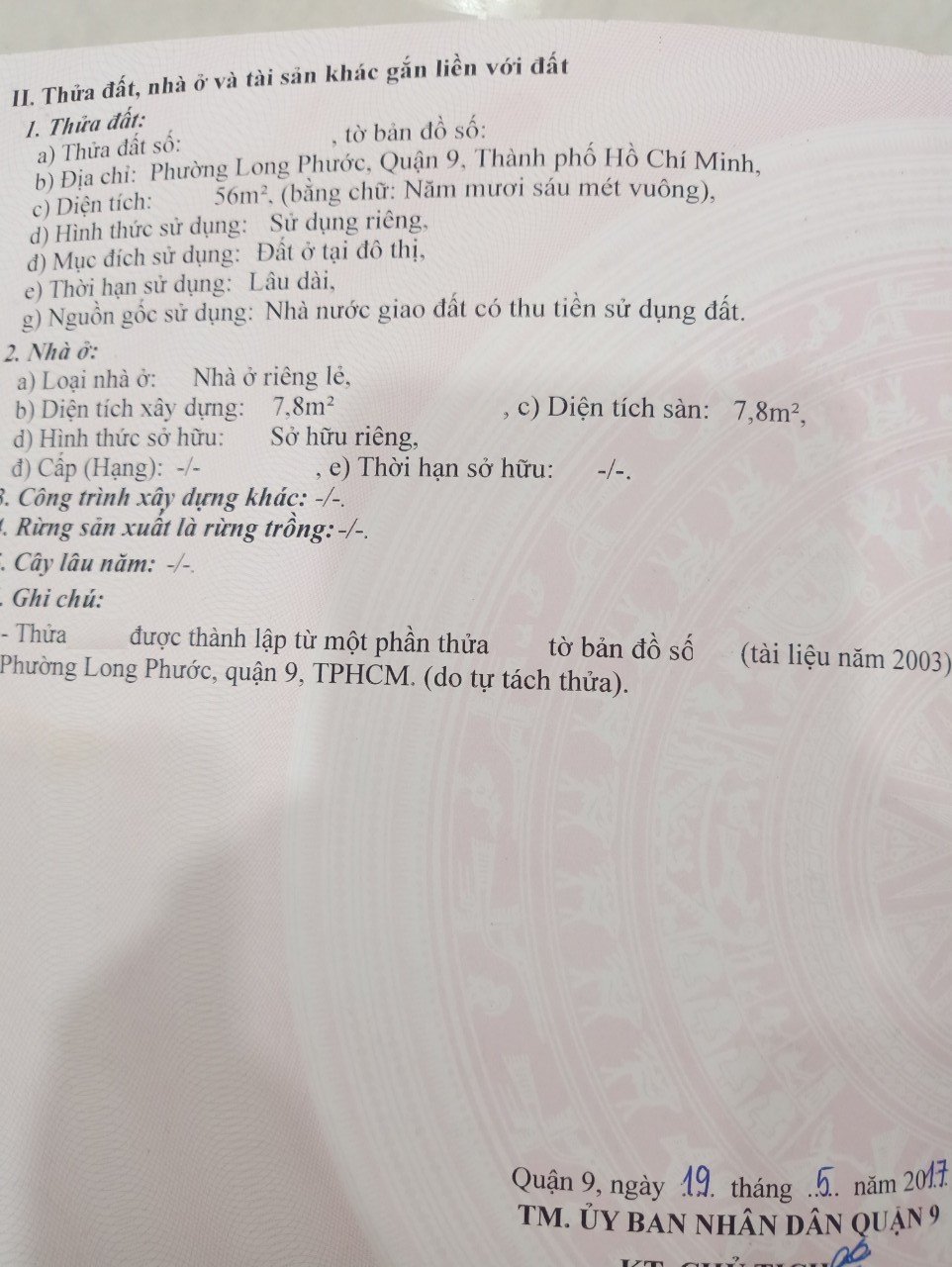 Địa chỉ tài sản: đường số 8, phường Long Phước, Phường Long Phước, Quận 9, Hồ Chí Minh
