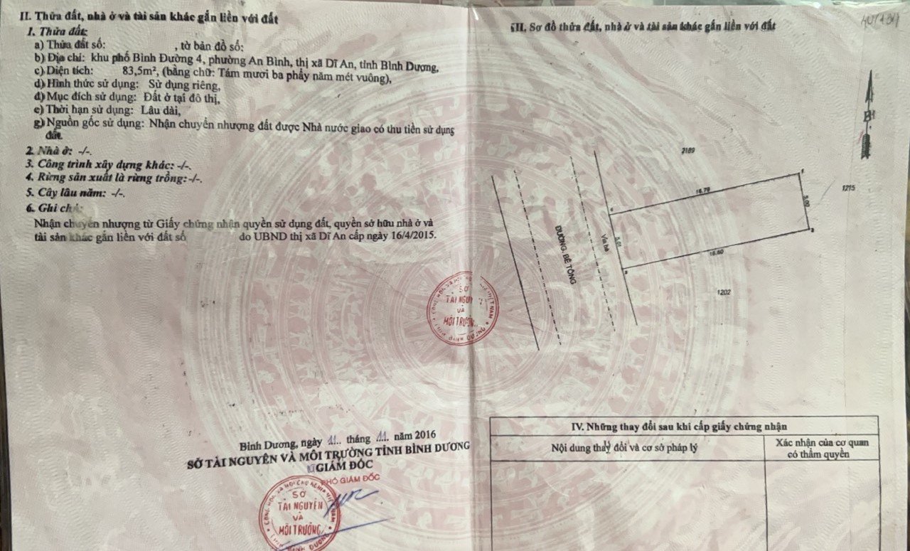 Địa chỉ tài sản: đường Nguyễn Tri Phương, phường An Bình, Phường An Bình, Thị xã Dĩ An, Bình Dương