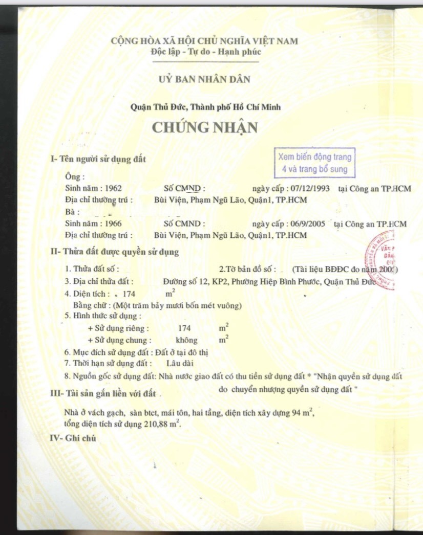Địa chỉ tài sản: đường số 12, Phường Hiệp Bình Phước, Phường Hiệp Bình Phước, Quận Thủ Đức, Hồ Chí Minh