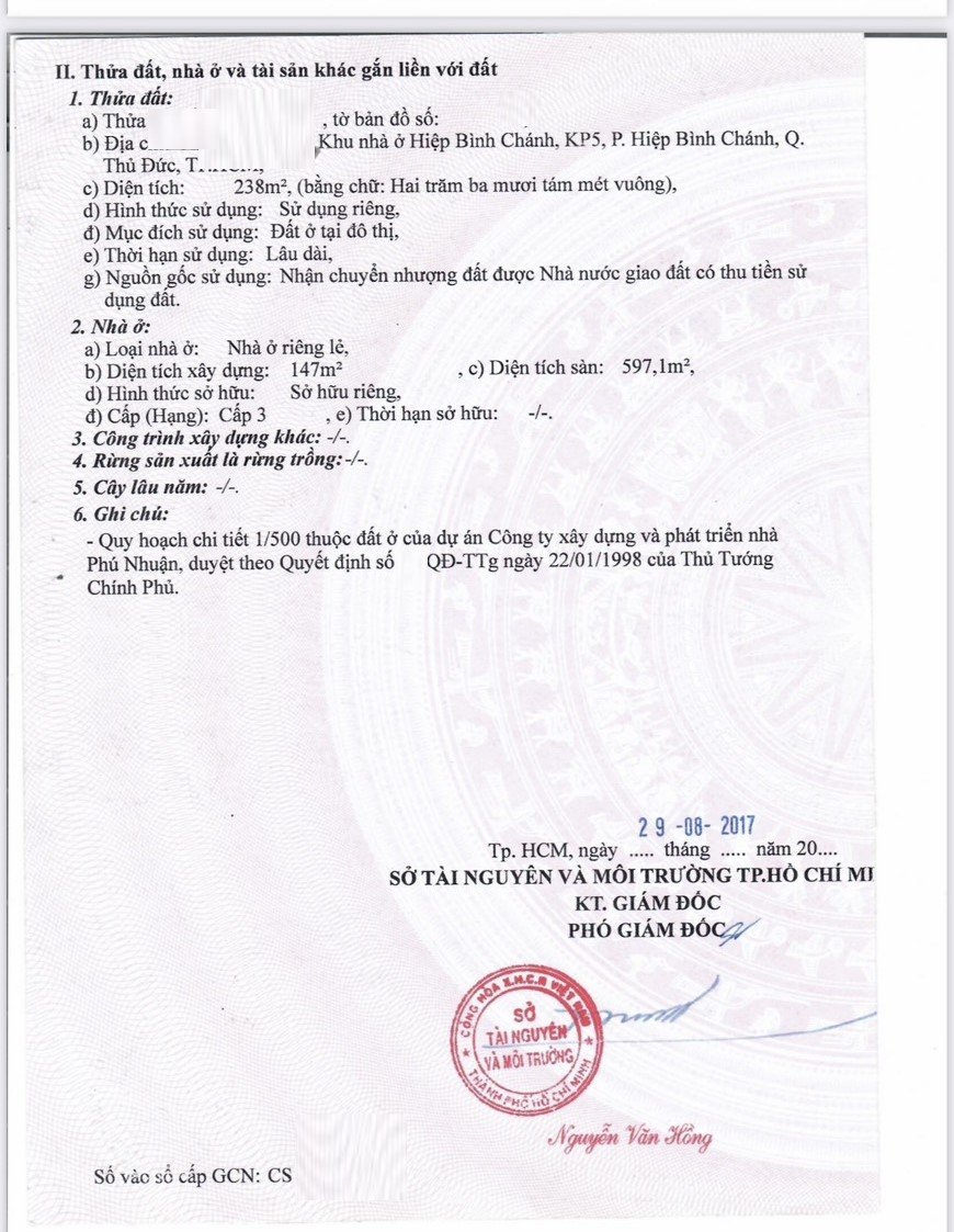 *Diện tích đất công nhận: 238m2. Ngang 7.75m x Dài 14m. Nở hậu