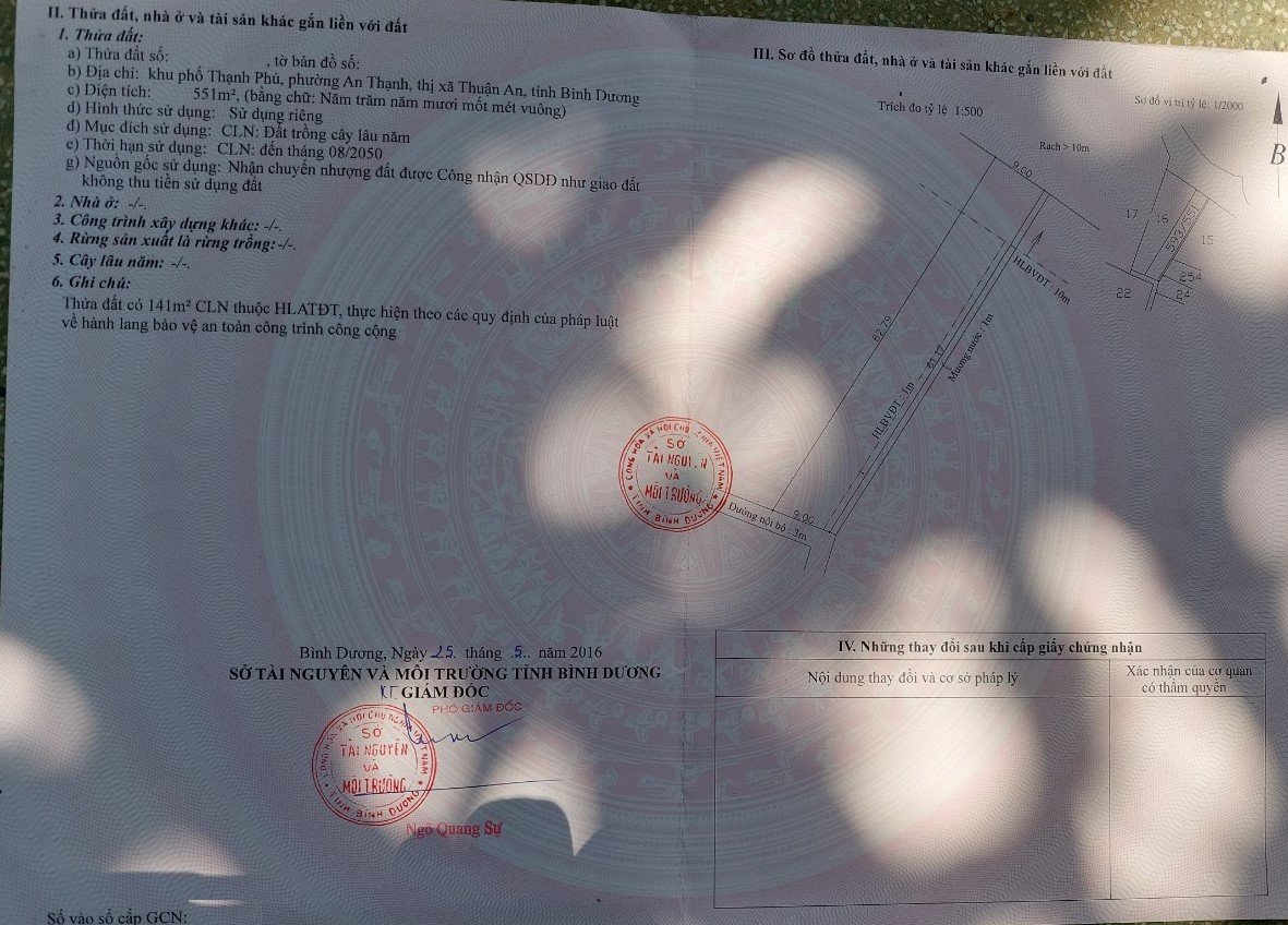 * Diện tích đất CLN: 551m2 (ngang 9m x dài 62.8m)