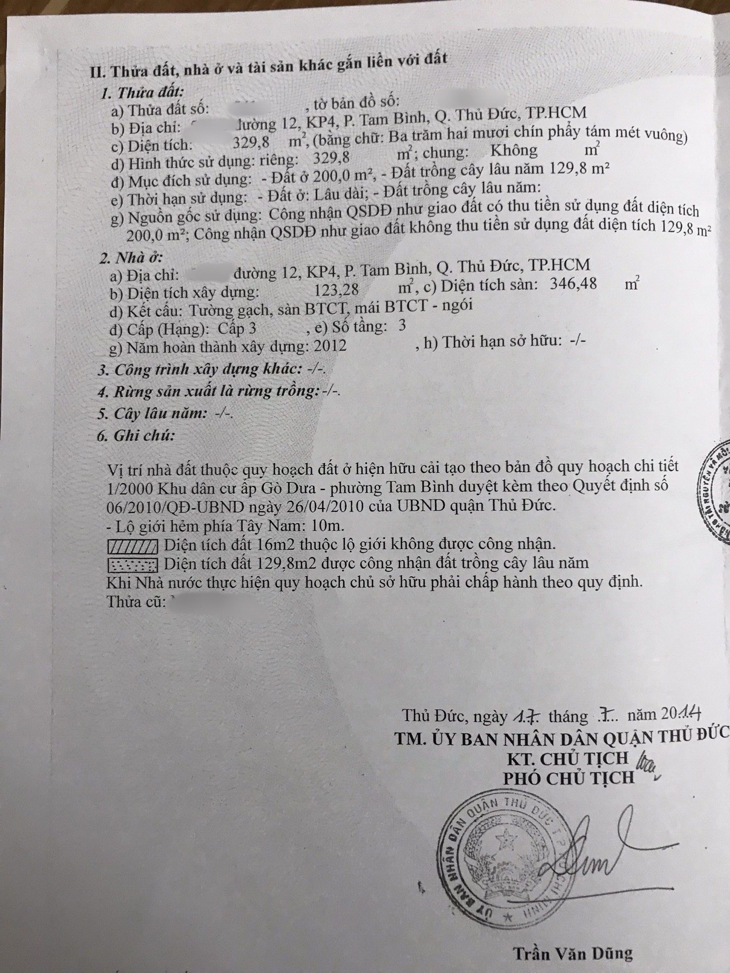 Diện tích 329.8 m² và 24m² chưa đưa vào sổ