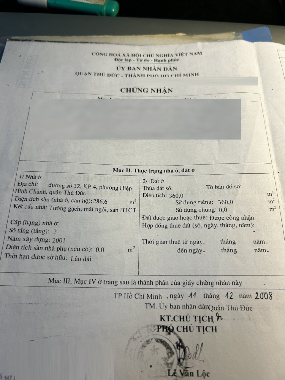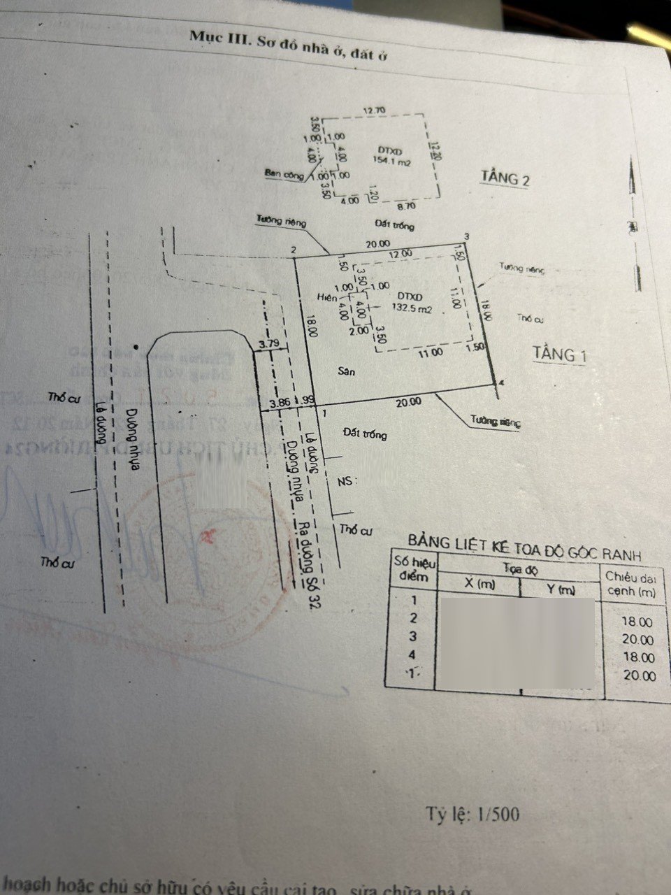 *Diện tích đất công nhận: 360m2. Ngang 18m x Dài 20m