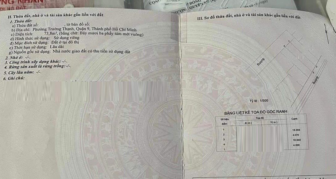 *Diện Tích đất công nhận: 73.8 m2 ngang 4 m x dài 18.5 m