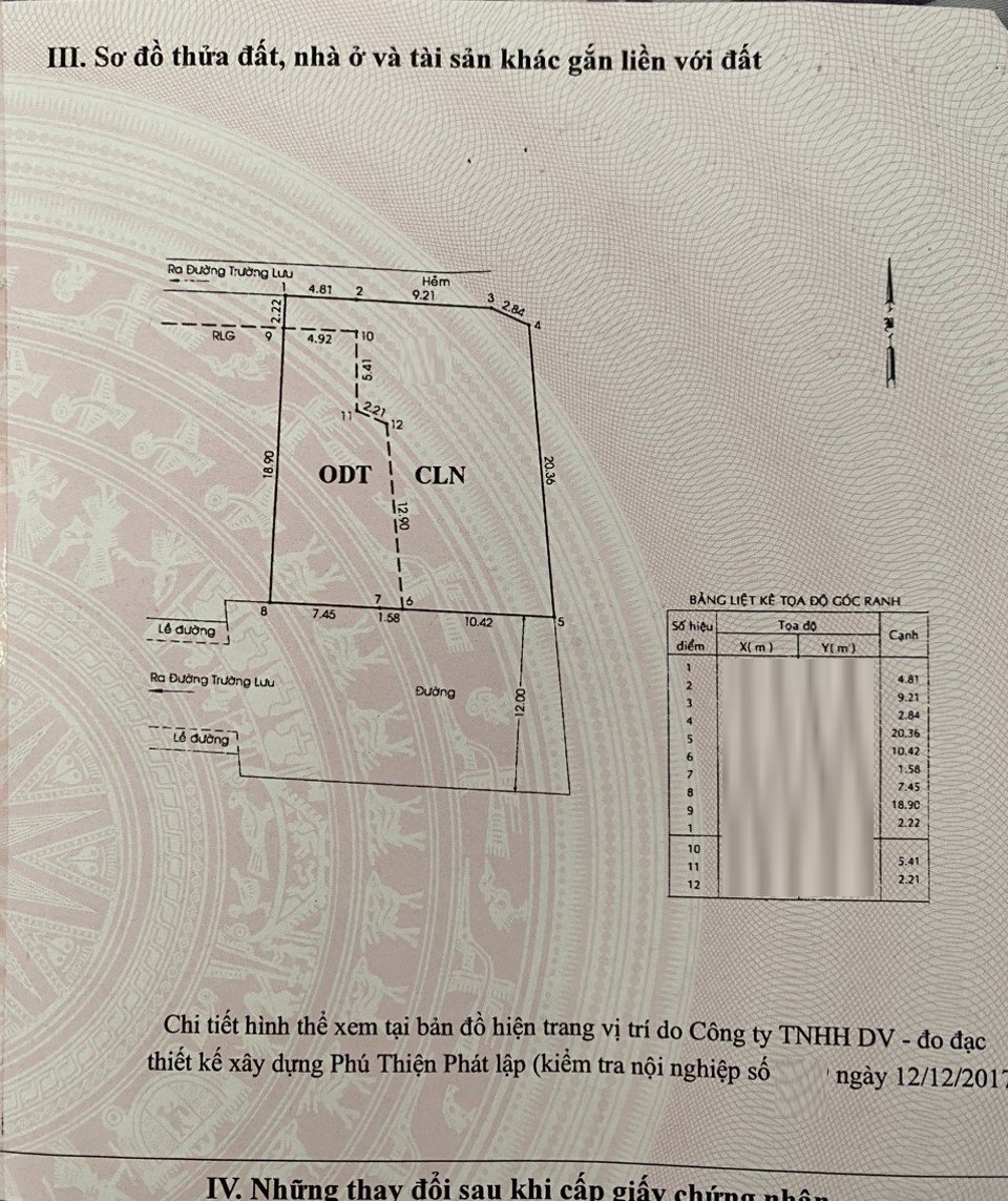 *Diện tích đất công nhận: 379.4m2. Ngang 19.45m x Dài 21.12m. ODT: 136.2m2, CLN: 243.2m2.
