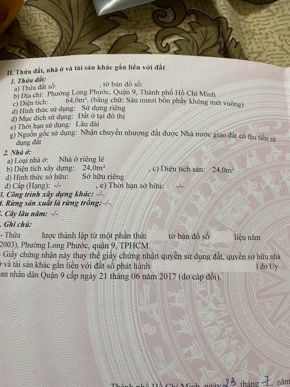 Loại BDS Đất nền, Hồ Chí Minh, Nhà đất bán, Quận 9 Pháp lý sổ đỏ Sân thượng