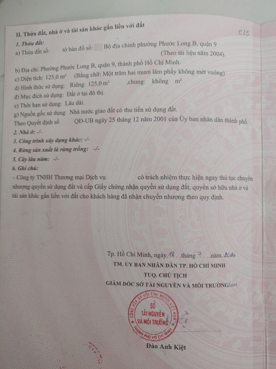 Diện Tích đất công nhận: 125 m2 ngang 5 m x dài 25 m