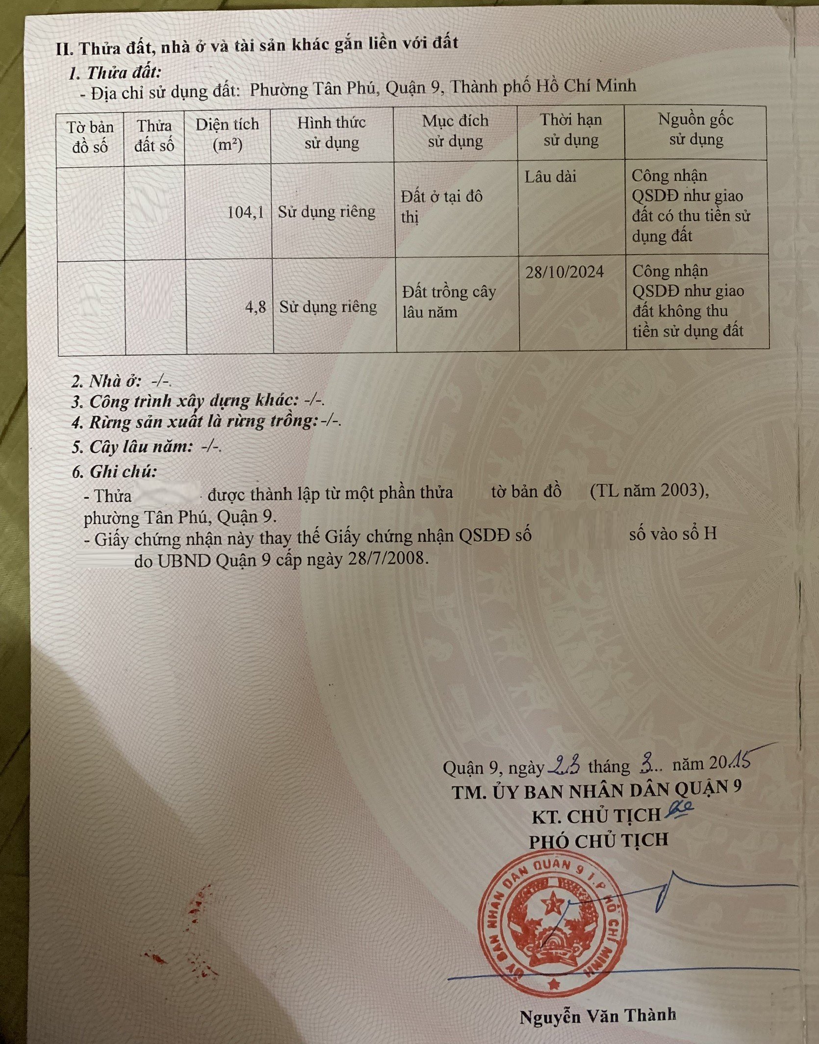 *Diện tích đất công nhận: 108.9m2. Ngang 5m x Dài 21.87m. ODT: 104.1m2, CLN: 4.8m2.