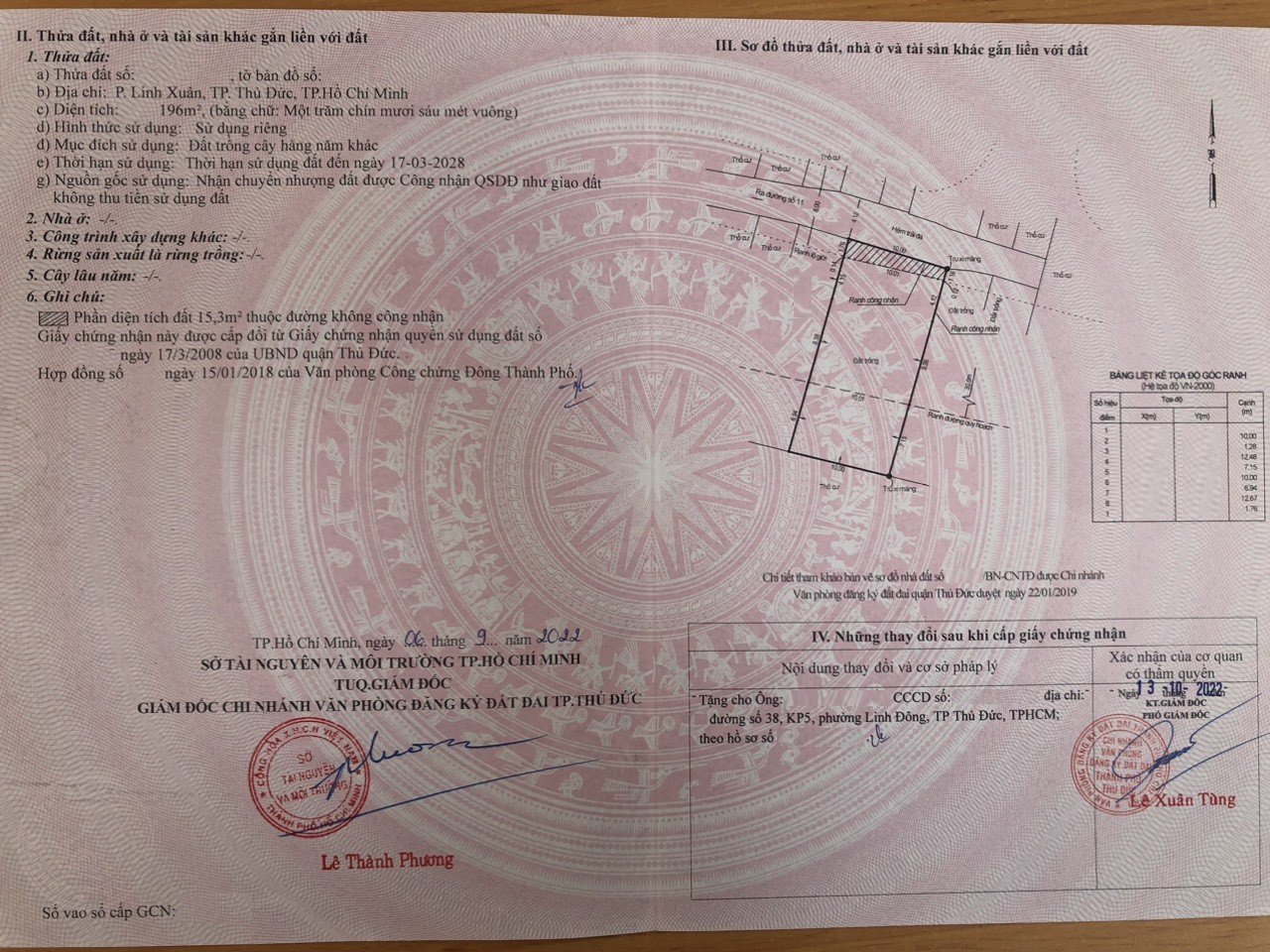 *Diện Tích đất công nhận: 196 m2 ngang 10 m x dài 20 m (đất trồng cây)