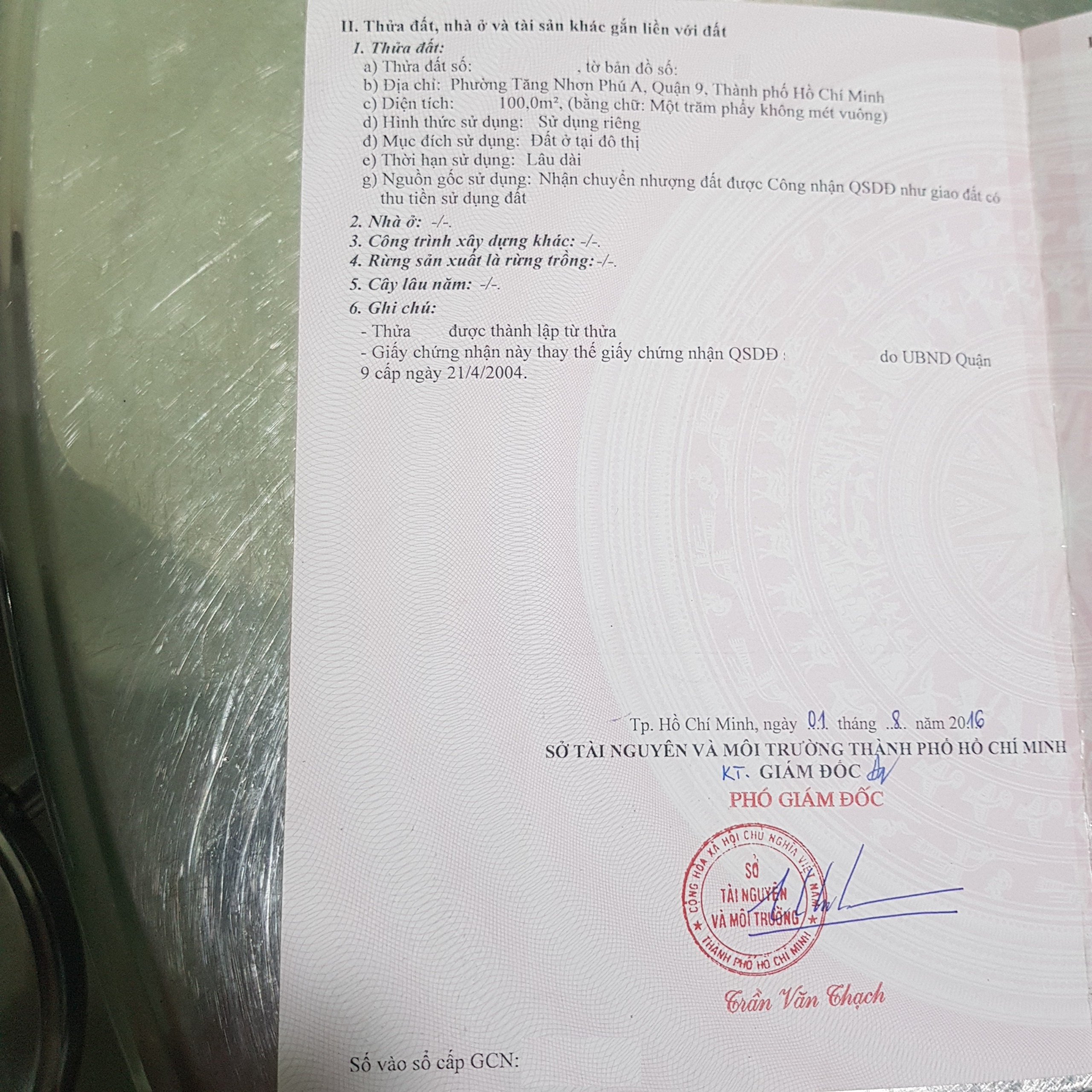 | Loại BDS | Bất động sản bán gấp, Bất động sản phí cao, Đất nền, Hồ Chí Minh, Nhà đất bán, Quận 9 | Pháp lý | sổ đỏ | Sân thượng | |