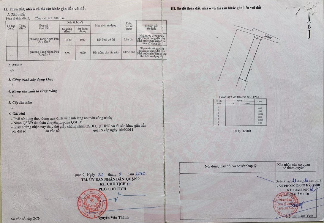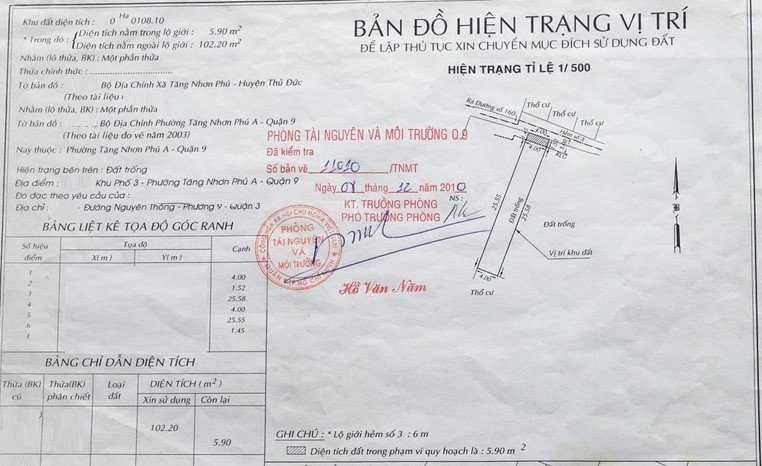 *Diện Tích đất công nhận: 108.1 m2 ngang 4 m x dài 25.5 m ODT: 102.2 m2 CLN: 5.9m2