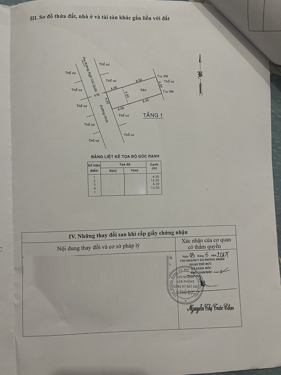Diện tích đất công nhận : 52.5m2. Ngang 4.2m x Dài 12.5m