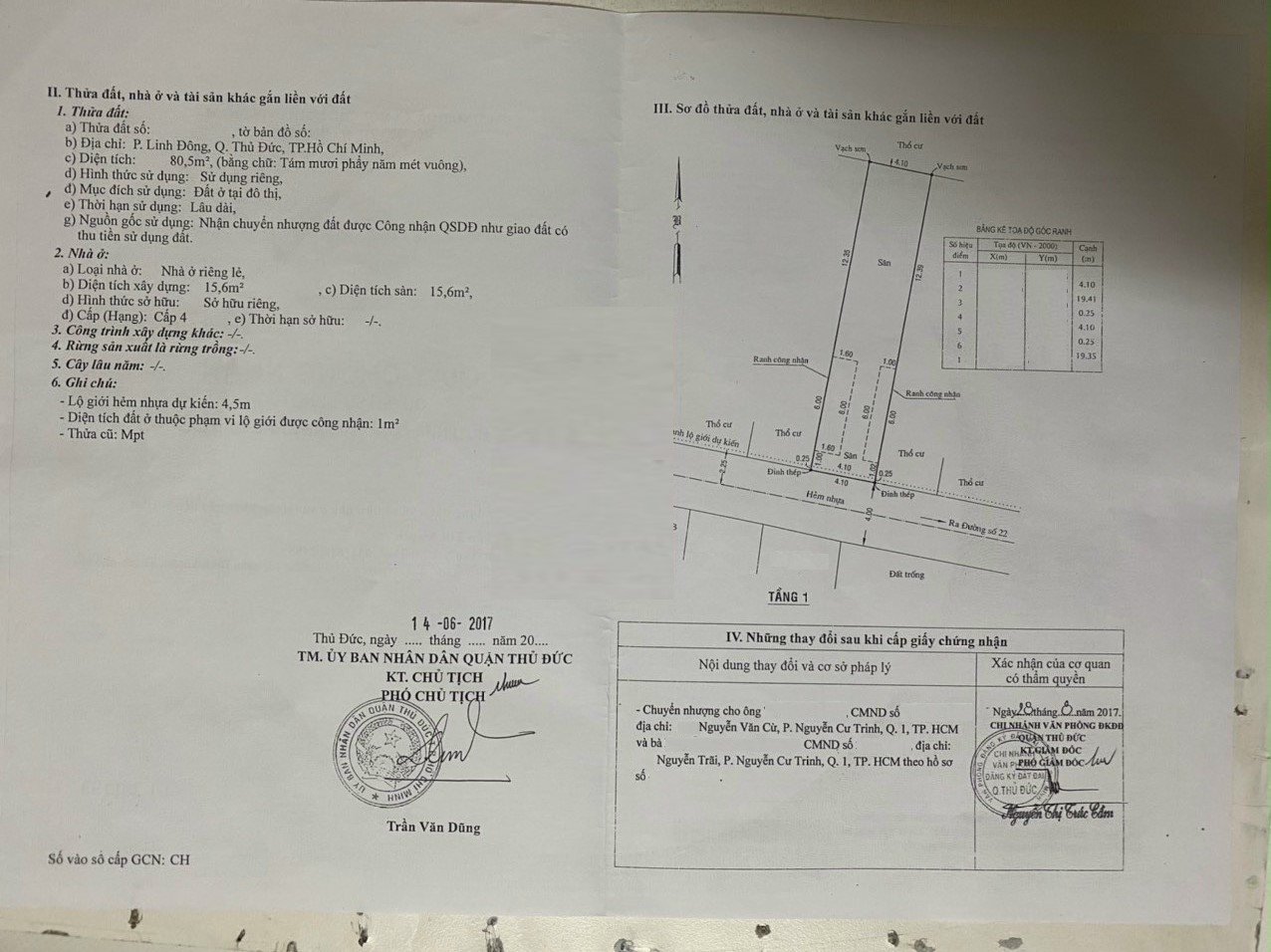 *Diện Tích đất công nhận: 80.5 m2 ngang 4.5 m x dài 18.3 m