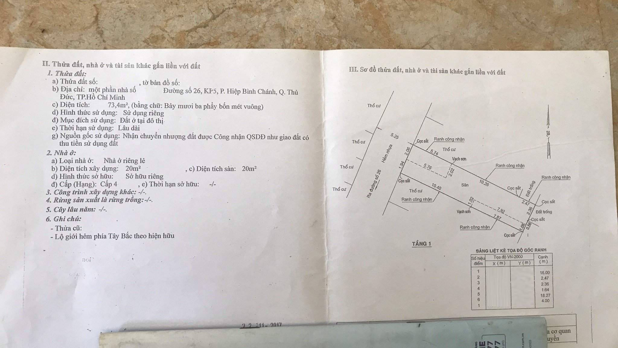 Địa chỉ tài sản: đường 26, Phường Hiệp Bình Chánh,, Phường Hiệp Bình Chánh, Quận Thủ Đức, Hồ Chí Minh