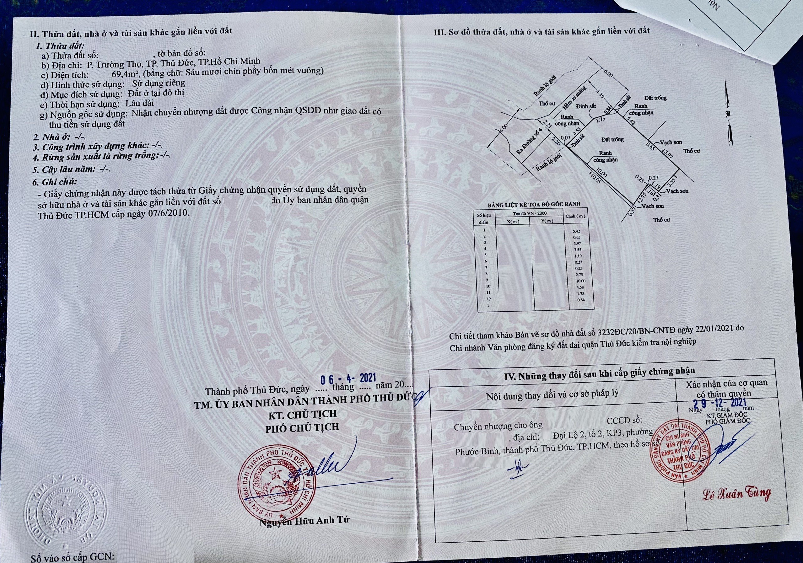 Địa chỉ tài sản: đường 4, Phường Trường Thọ, Phường Trường Thọ, Quận Thủ Đức, Hồ Chí Minh