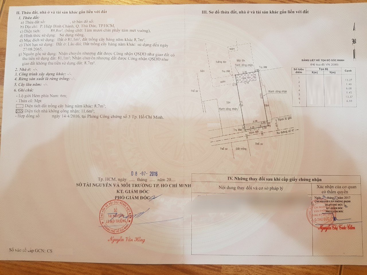 *Diện Tích đất công nhận: 89.8 m2 ngang 6 m x dài 15 m ODT: 81.1 m2 CLN: 8.7 m2