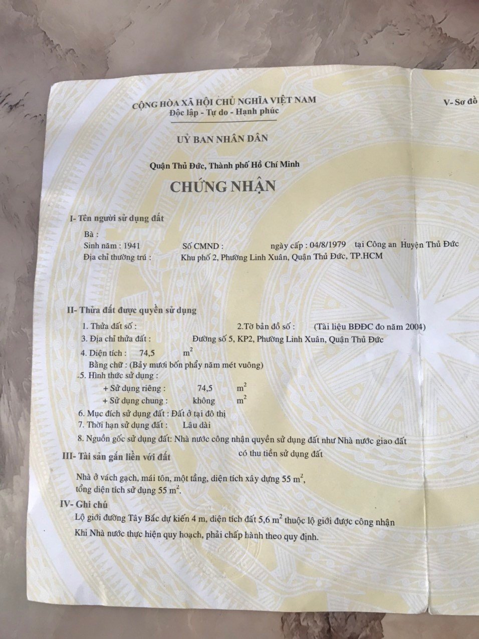 Địa chỉ tài sản: đường 5, Phường Linh Xuân, Phường Linh Trung, Quận Thủ Đức, Hồ Chí Minh