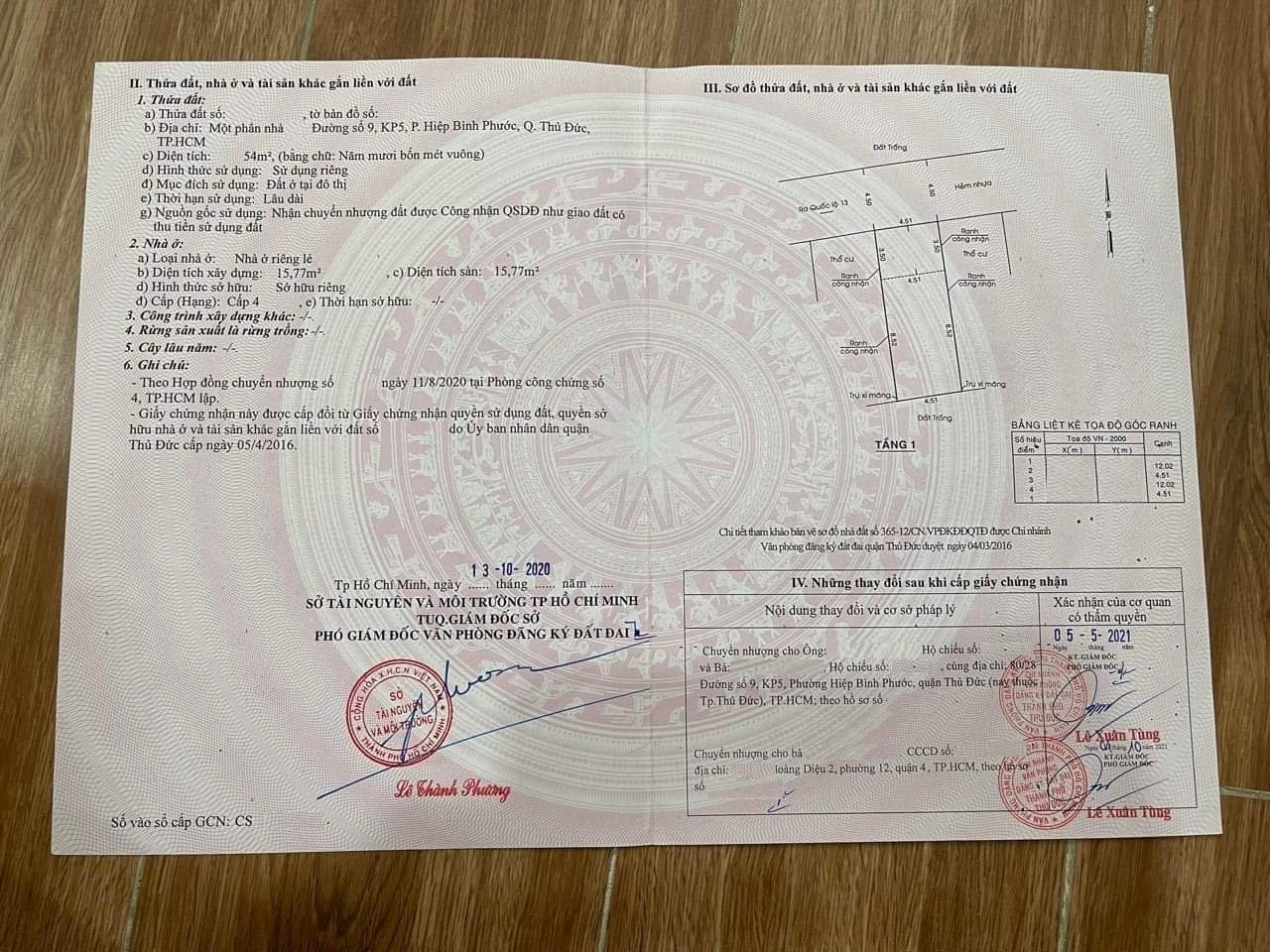 *Diện Tích đất công nhận: 54 m2 ngang 4.5 m x dài 12 m