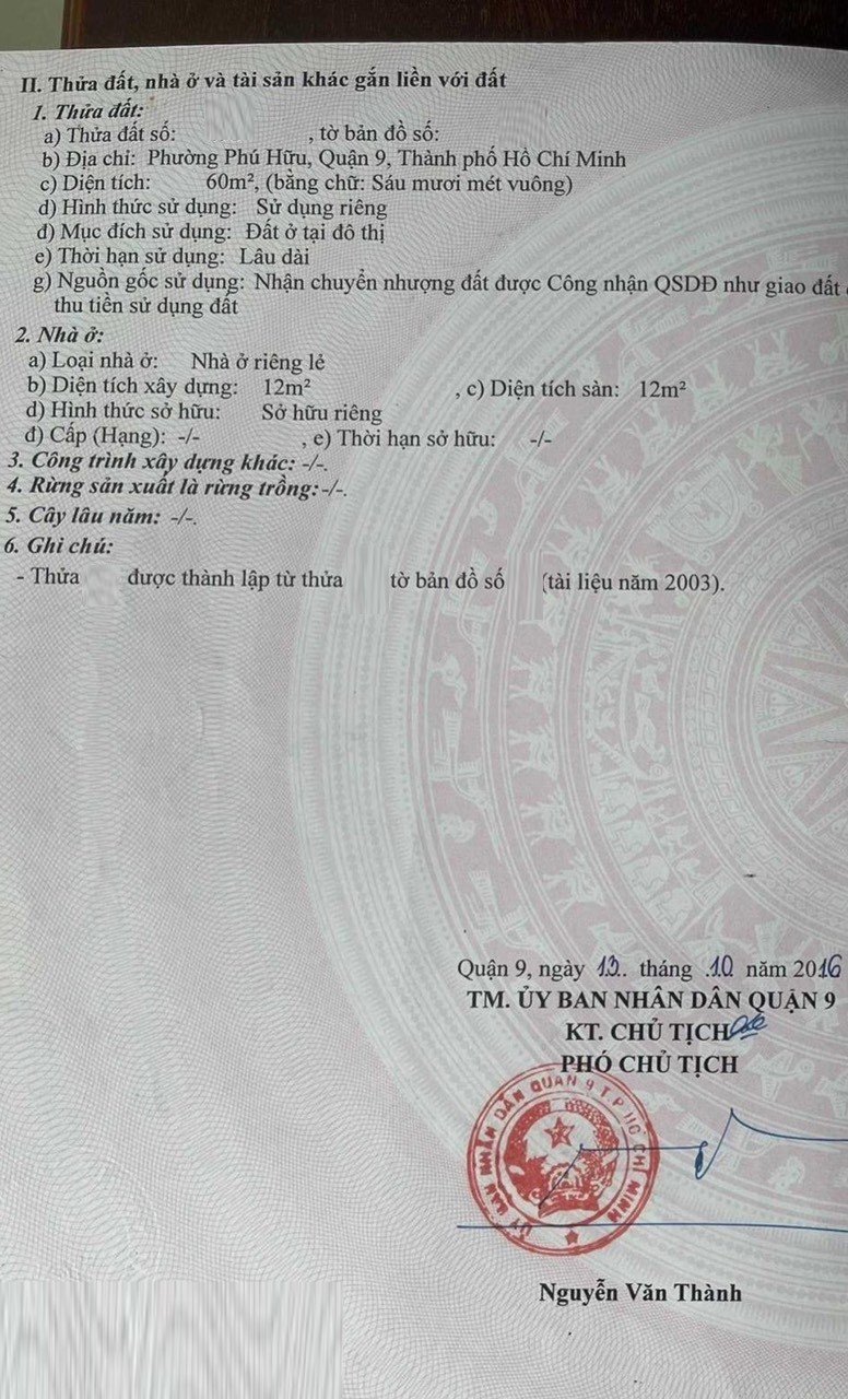 Địa chỉ tài sản: đường 970, phường Phú Hữu, Phường Phú Hữu, Quận 9, Hồ Chí Minh