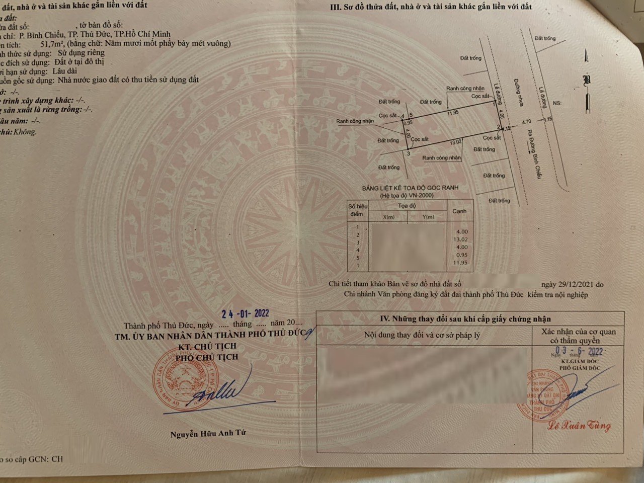 *Diện tích đất công nhận: 51.7m2. Ngang 4m x Dài 13.02m.