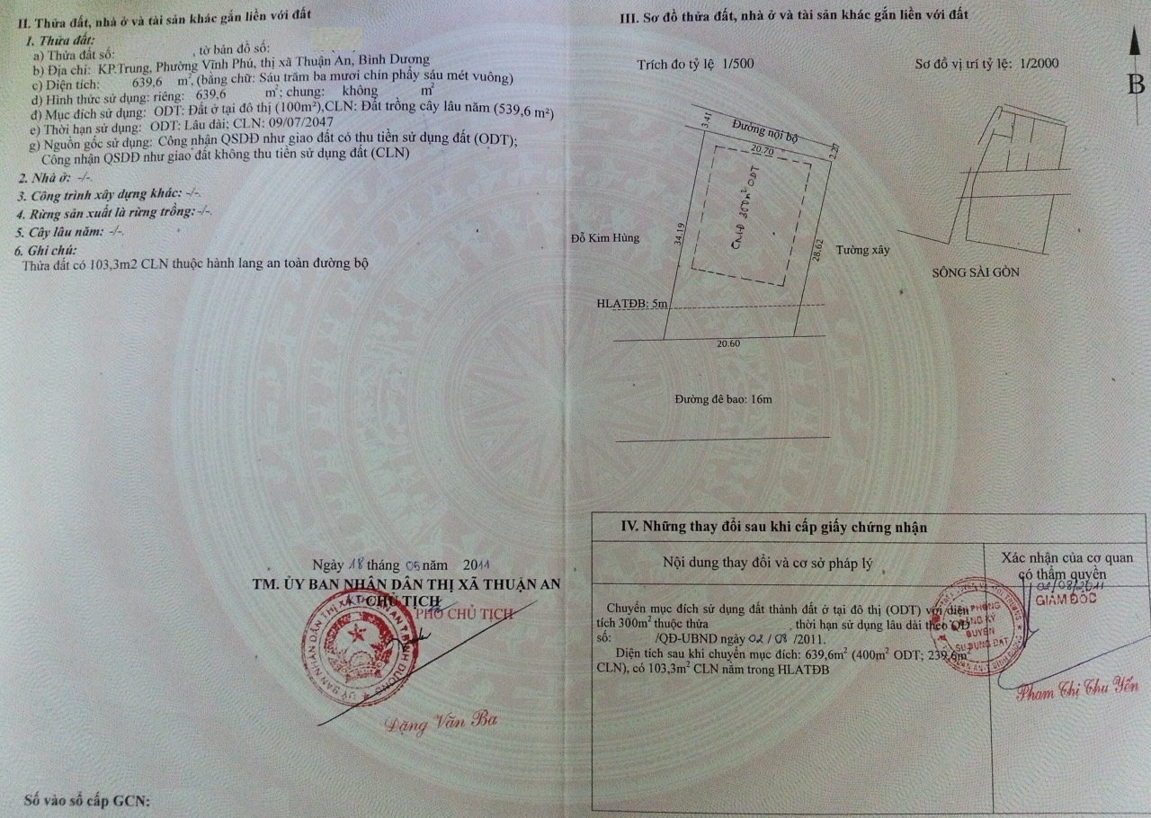 Địa chỉ tài sản: Đường bờ bao sông Sài Gòn - Đường 17, Phường Vĩnh Phú, Thị xã Thuận An, Phường Vĩnh Phú, Huyện Thuận An, Bình Dương