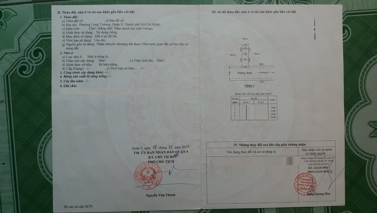 *Diện Tích đất công nhận: 52 m2 ngang 4 m x dài 13 m