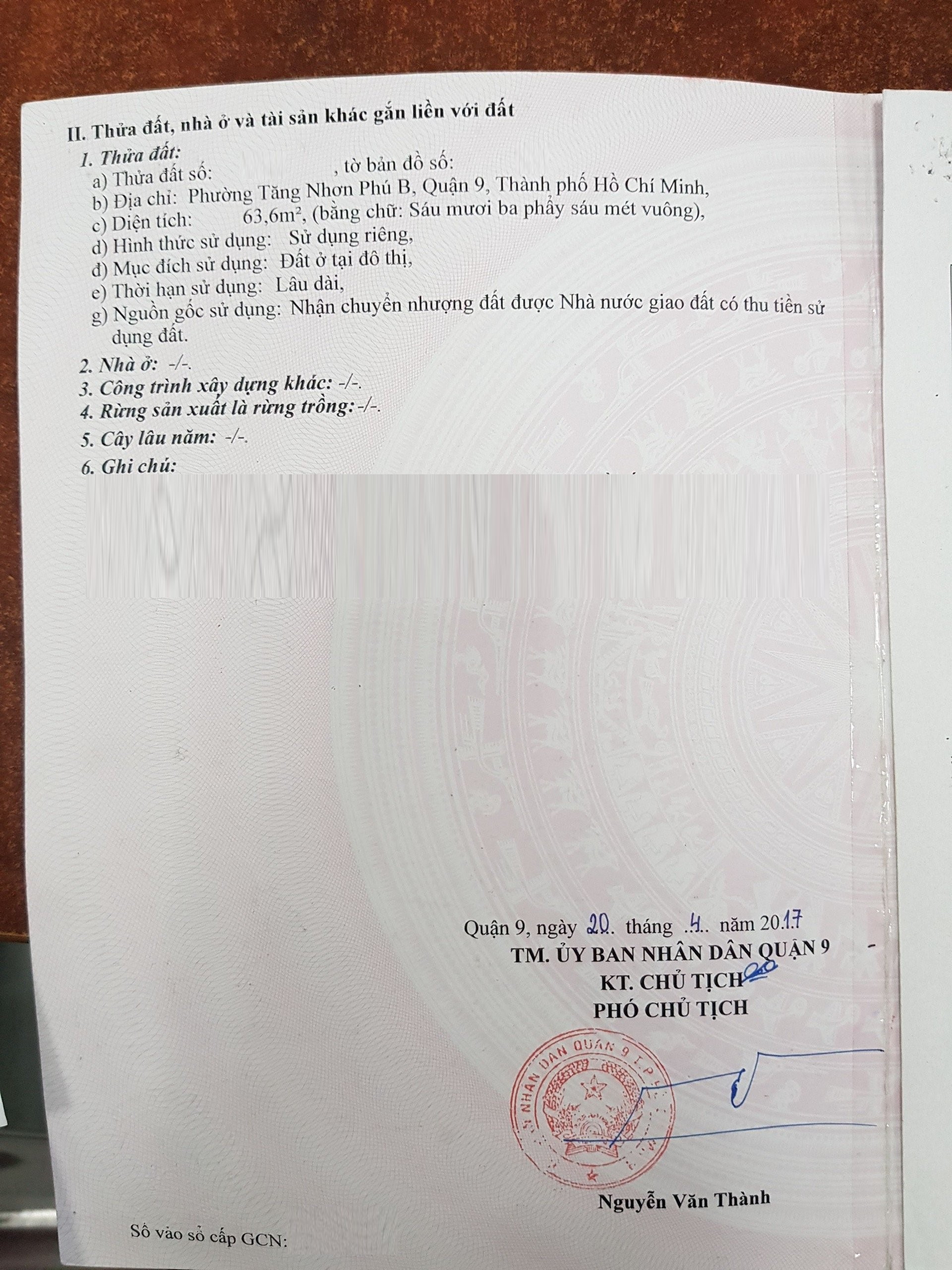 Địa chỉ tài sản: đường Đình Phong Phú, Phường Tăng Nhơn Phú B, TP Thủ Đức., Phường Tăng Nhơn Phú B, Quận 9, Hồ Chí Minh