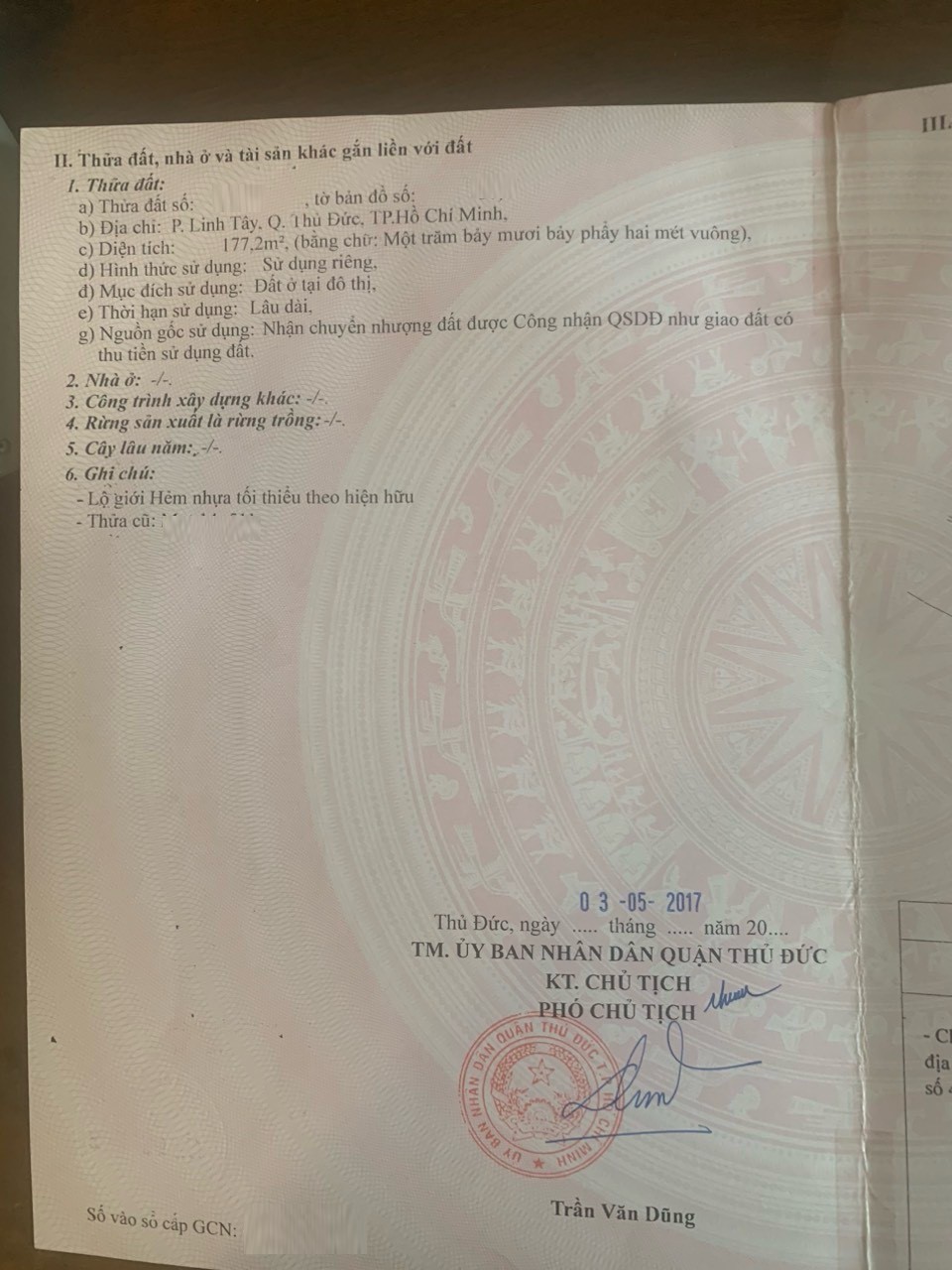 – Diện tích đất công nhận: 177.2m2 ngang 6m