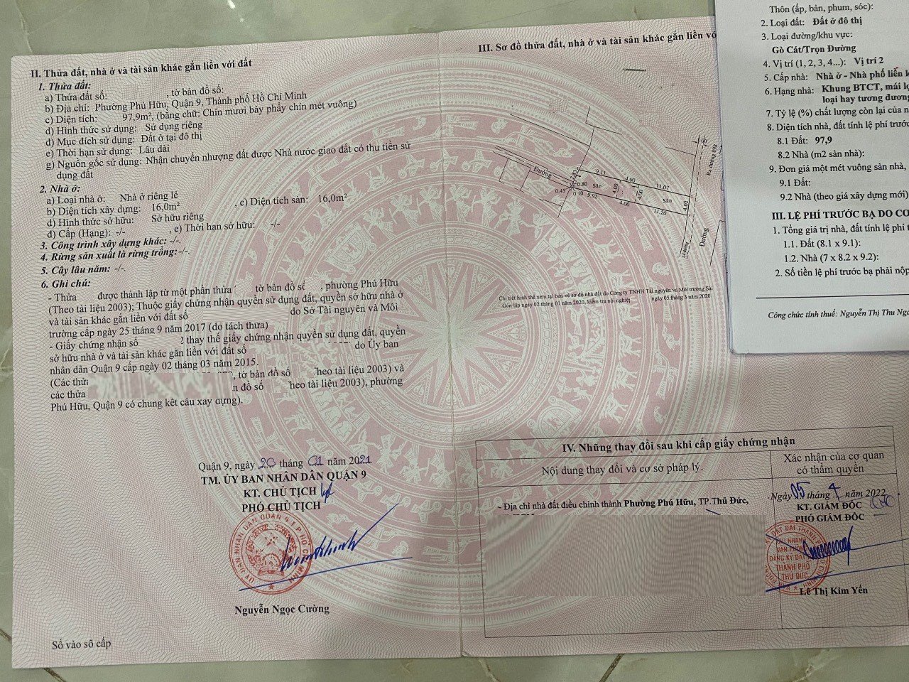 * Diện tích đất ODT: 97.9m2 (ngang 4m x dài 23.8m)