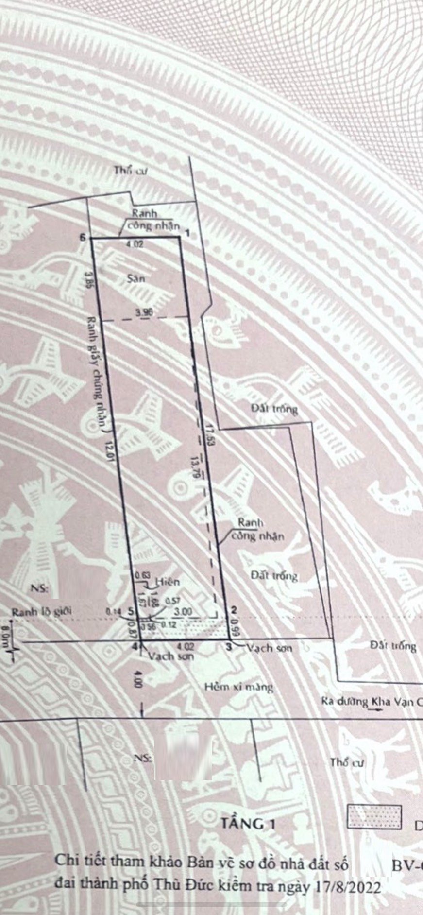 *Diện tích đất công nhận: 74.1m2. Ngang 4.02m x Dài 18.5m. ODT: 70.2m2, CLN: 3.9m2