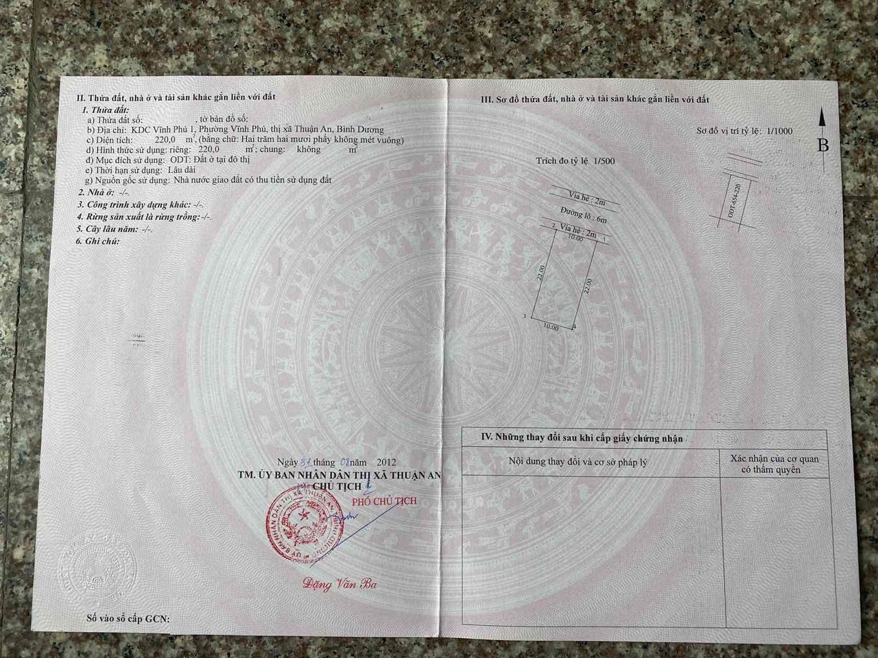 Địa chỉ tài sản: khu dân cư Vĩnh Phú 1, Phường Vĩnh Phú, Phường Vĩnh Phú, Huyện Thuận An, Bình Dương