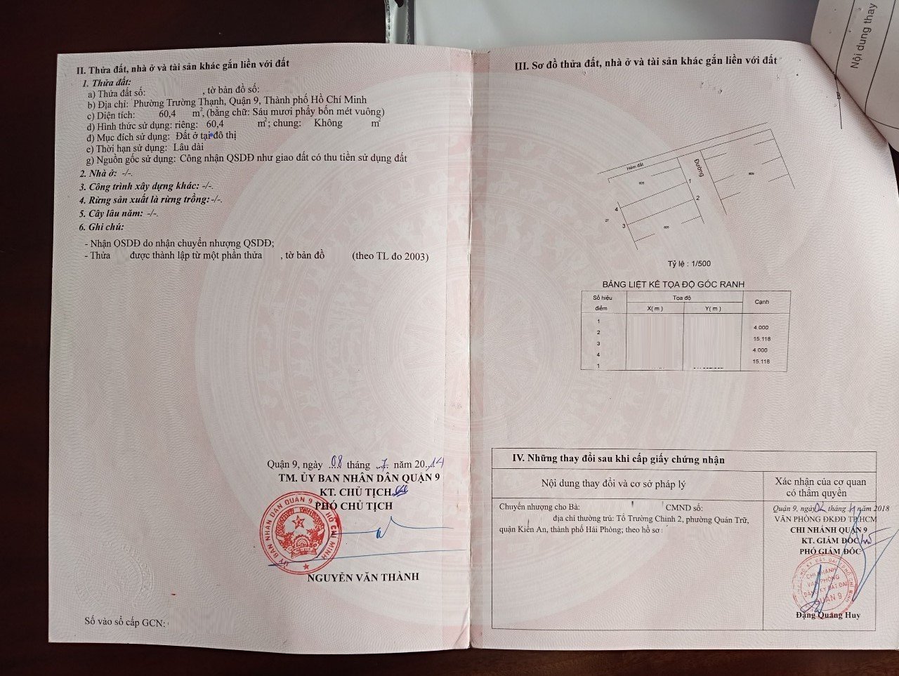 *Diện Tích đất công nhận: 60.4 m2 ngang 4 m x dài 15 m