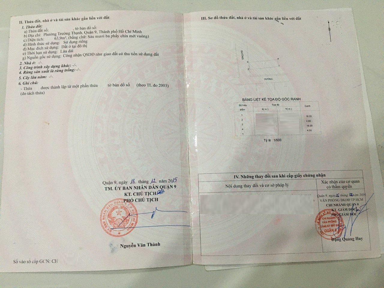 *Diện tích đất công nhận: 63.9m2. Ngang 4m x Dài 16m.