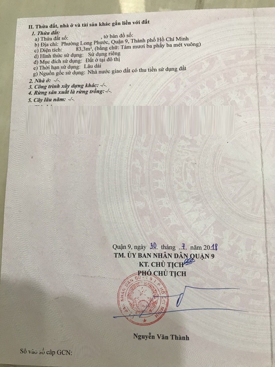 Địa chỉ tài sản: đường Long Thuận, Phường Long Phước, Phường Long Phước, Quận 9, Hồ Chí Minh