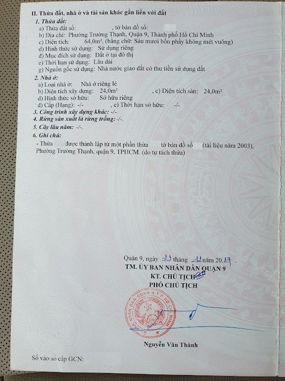 Địa chỉ tài sản: đường Long Thuận, phường Trường Thạnh, Phường Trường Thạnh, Quận 9, Hồ Chí Minh