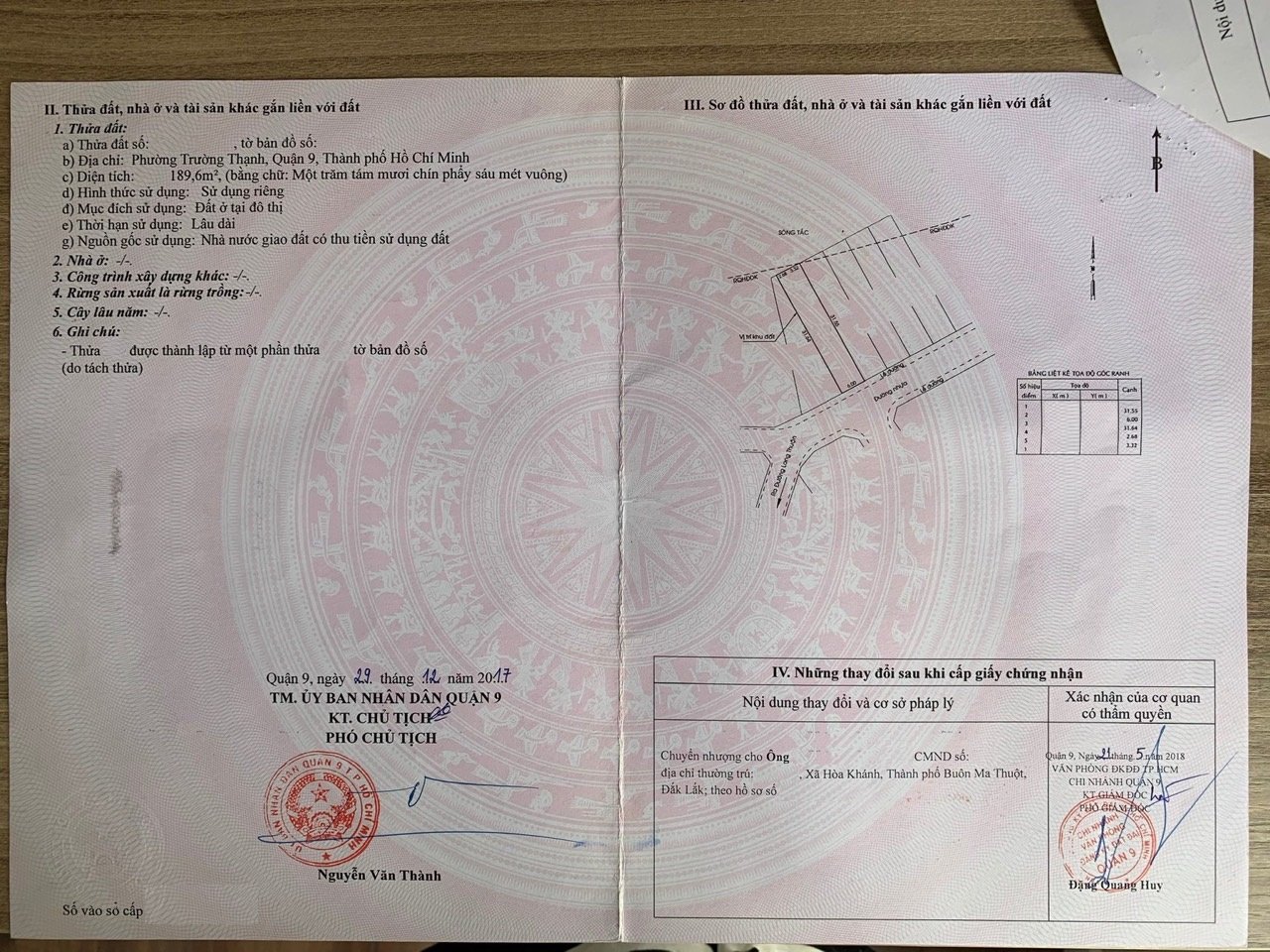 Loại BDS Đất nền, Hồ Chí Minh, Nhà đất bán, Quận 9 Pháp lý sổ đỏ Sân thượng