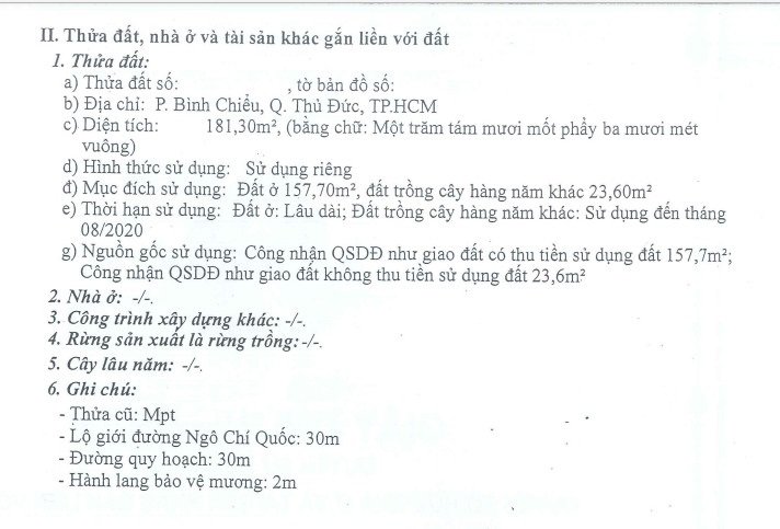 Địa chỉ tài sản: Đường Ngô Chí Quốc, Phường Bình Chiểu, Phường Bình Chiểu, Quận Thủ Đức, Hồ Chí Minh