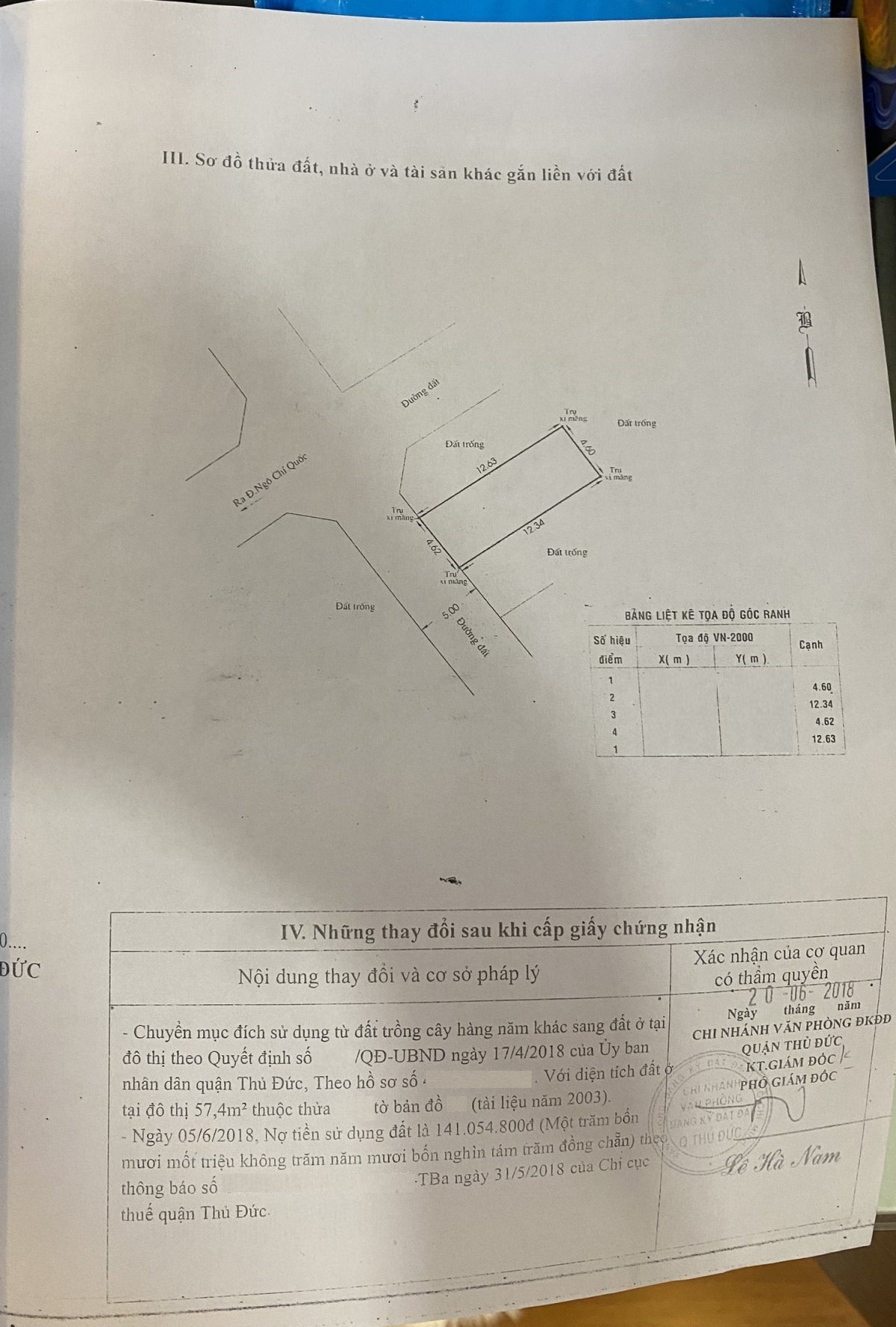 *Diện Tích đất công nhận: 57.4 m2 ngang 4.6 m x dài 12.6 m