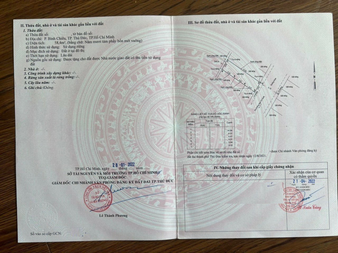 *Diện Tích đất công nhận: 58.4 m2 ngang 4.02 m x dài 14.52 m