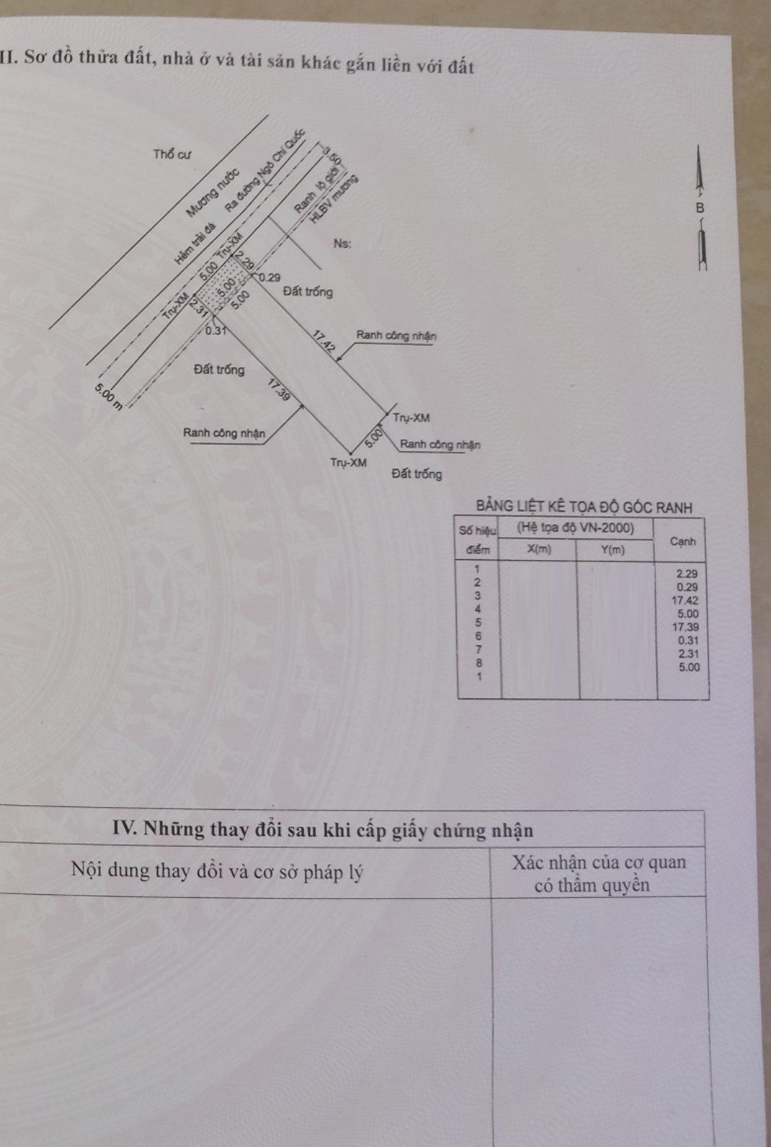 *Diện tích đất công nhận: 100m2. Ngang 5m x Dài 20m. ODT: 87m2, CLN: 13m2.