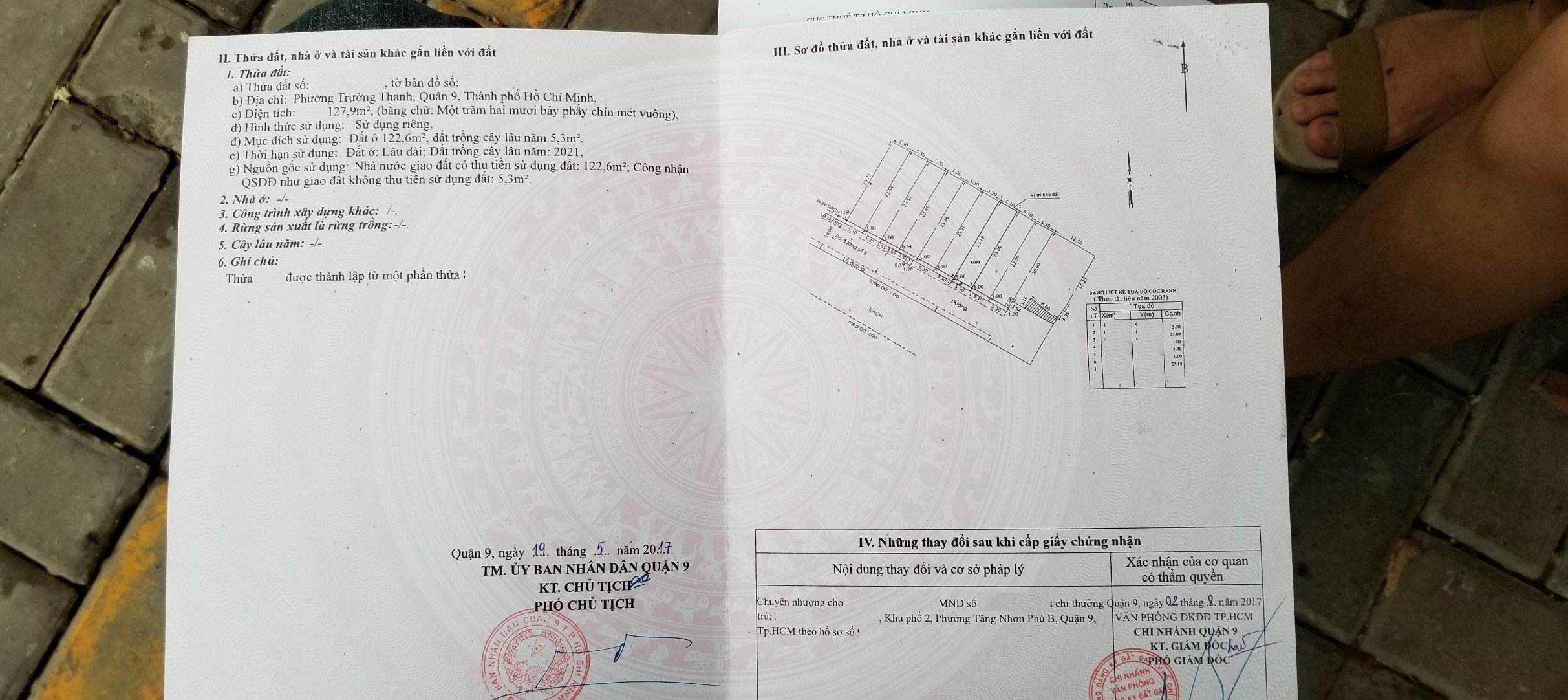 * Diện tích đất: 127.9m2 (ngang 5m x dài 23m) ODT: 122.6m2 CLN: 5.3m2