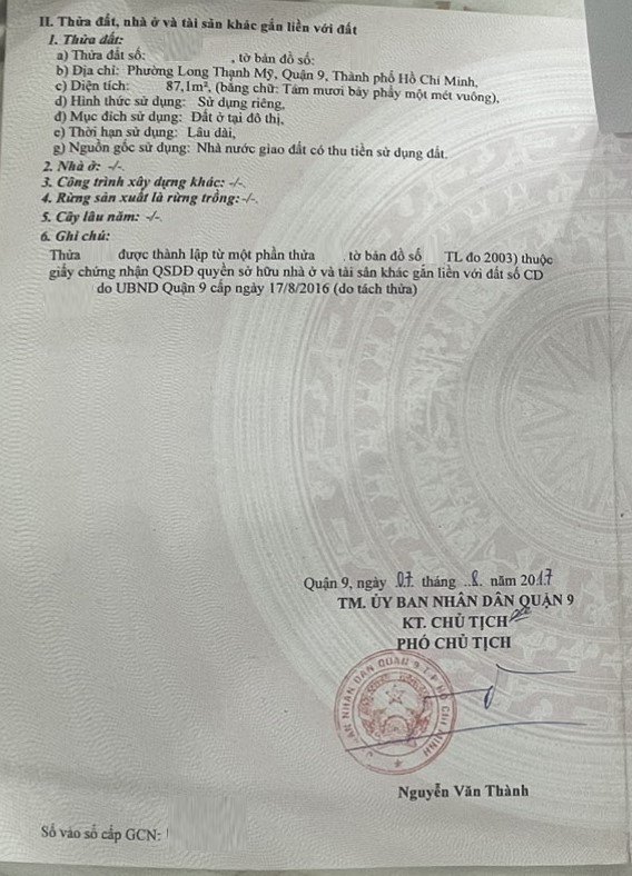 Địa chỉ tài sản: đường Nguyễn Xiển, Phường Long Thạnh Mỹ, TP. Thủ Đức. TP. HCM, Phường Long Thạnh Mỹ, Quận 9, Hồ Chí Minh