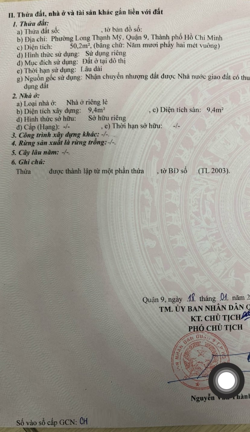 Địa chỉ tài sản: đường Nguyễn Xiển, phường Long Thạnh Mỹ, Phường Long Thạnh Mỹ, Quận 9, Hồ Chí Minh