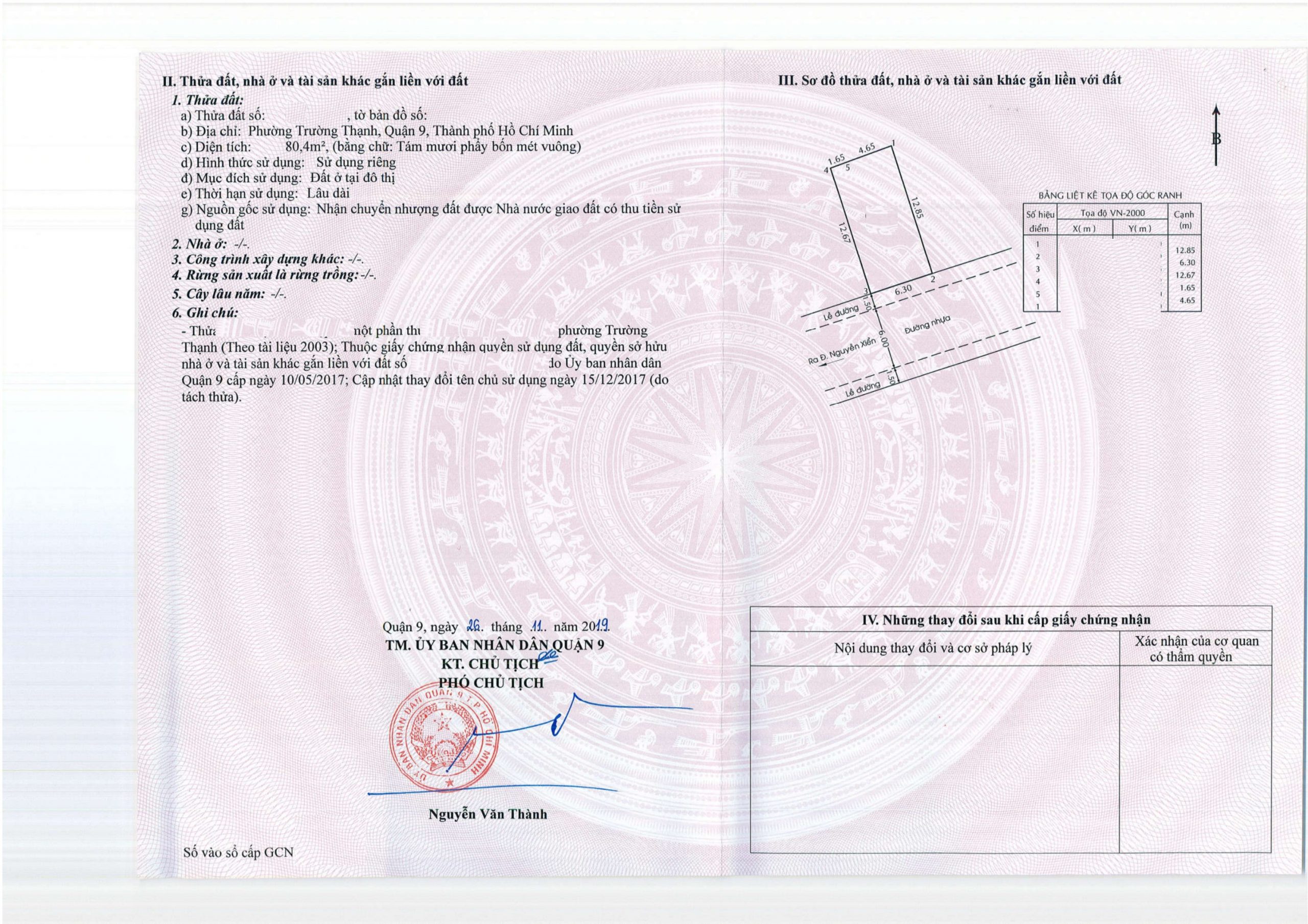 *Diện Tích đất công nhận: 80.4 m2 ngang 6.3 m x dài 12.85 m