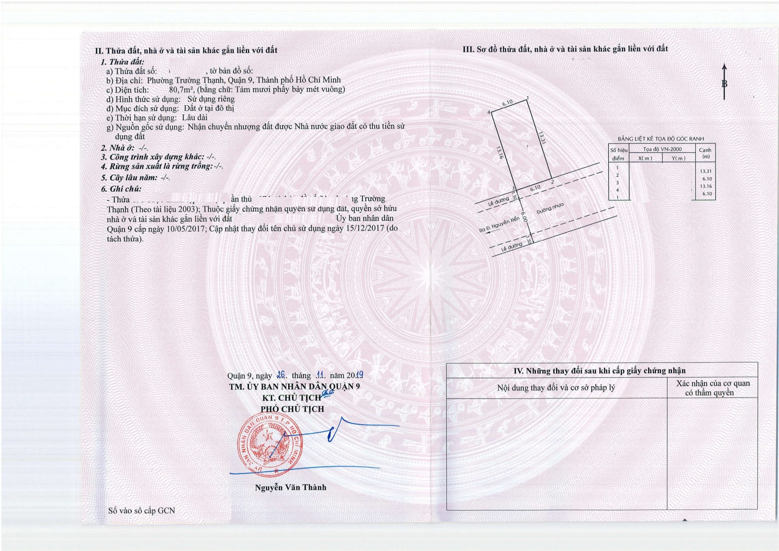 *Diện Tích đất công nhận: 80.7 m2 ngang 6.1 m x dài 13.31 m