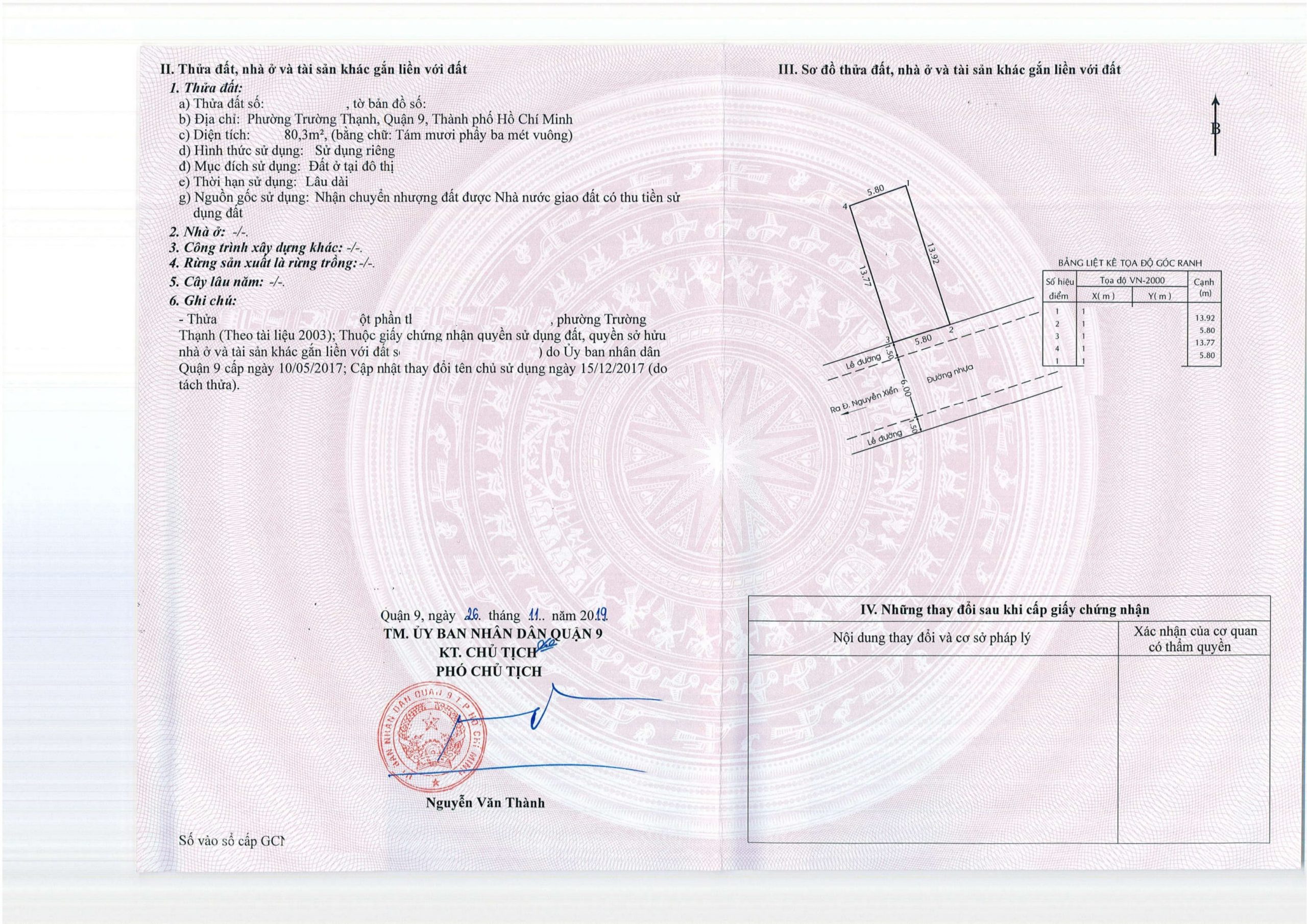 *Diện Tích đất công nhận: 80.3 m2 ngang 5.8 m x dài 13.92 m