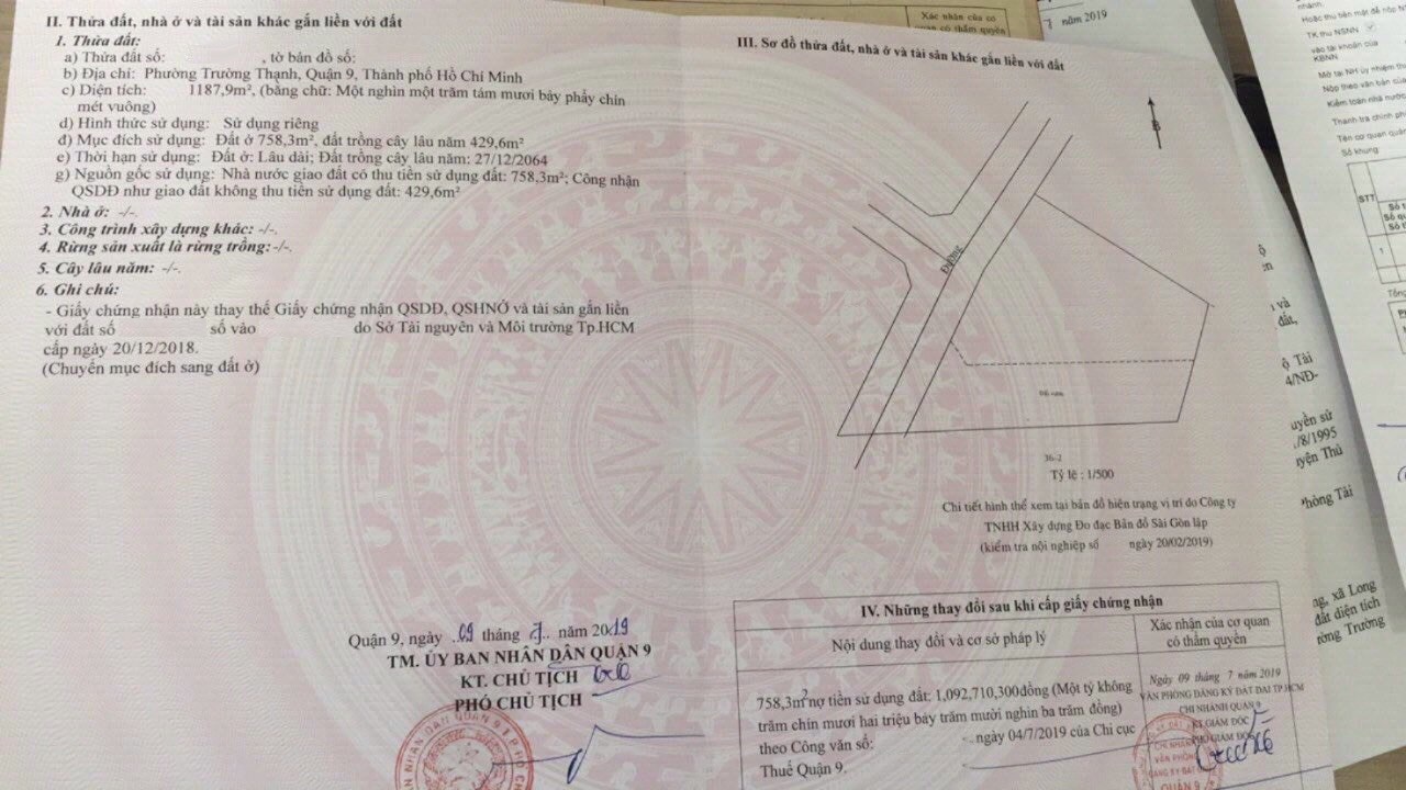 *Diện Tích đất công nhận: 1187.9 m2   ODT: 758.3m2 m2 DTC: 429.6 m2